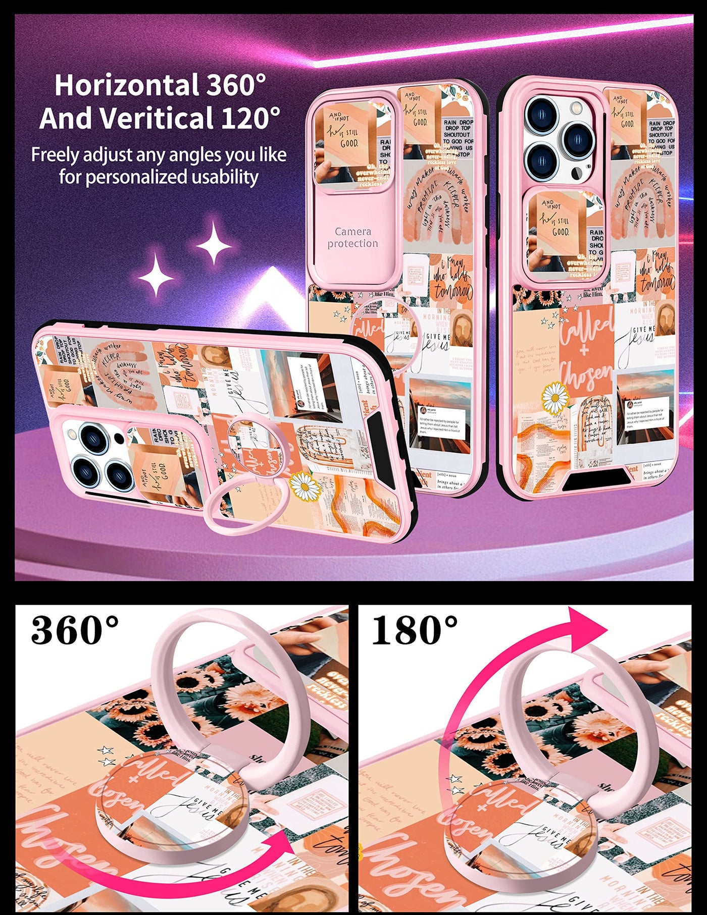 Material: High-Quality Thin Hard Pc, Comfortable To The Touch, Compatible With Iphone 13 Pro Max (68 Inch) Only Design: Brighter Colorful Pattern Design, Making Your Iphone 13 Pro Max Phone Looks More Distinctive And More Stylish And Fashionable Advantage: 1 This Iphone 13 Pro Max Case Sliding Camera Protection Protects Your Phone From Lens Scratches And A 360-Degree Rotatable Ring Kickstand Allows You To Use Your Phone From Different Angles 2 The Slide Camera Cover Design As A Push Window Can Effectively Protect Your Lens In Daily Life Without Affecting The Use Of The Camera 3 Prevent Iphone Pro Max 13 Damage From Accidental Drops And Collisions From Daily Use, While Adding Security And Protecting Our Privacy 4 Accurate Opening, Easy Access To Camera, Speakers, Charging Port, Accessory Slot, And Other Ports You Will Get: 1Iphone 13 Pro Max Phone Case And 1Rotatable Ring Kickstand
