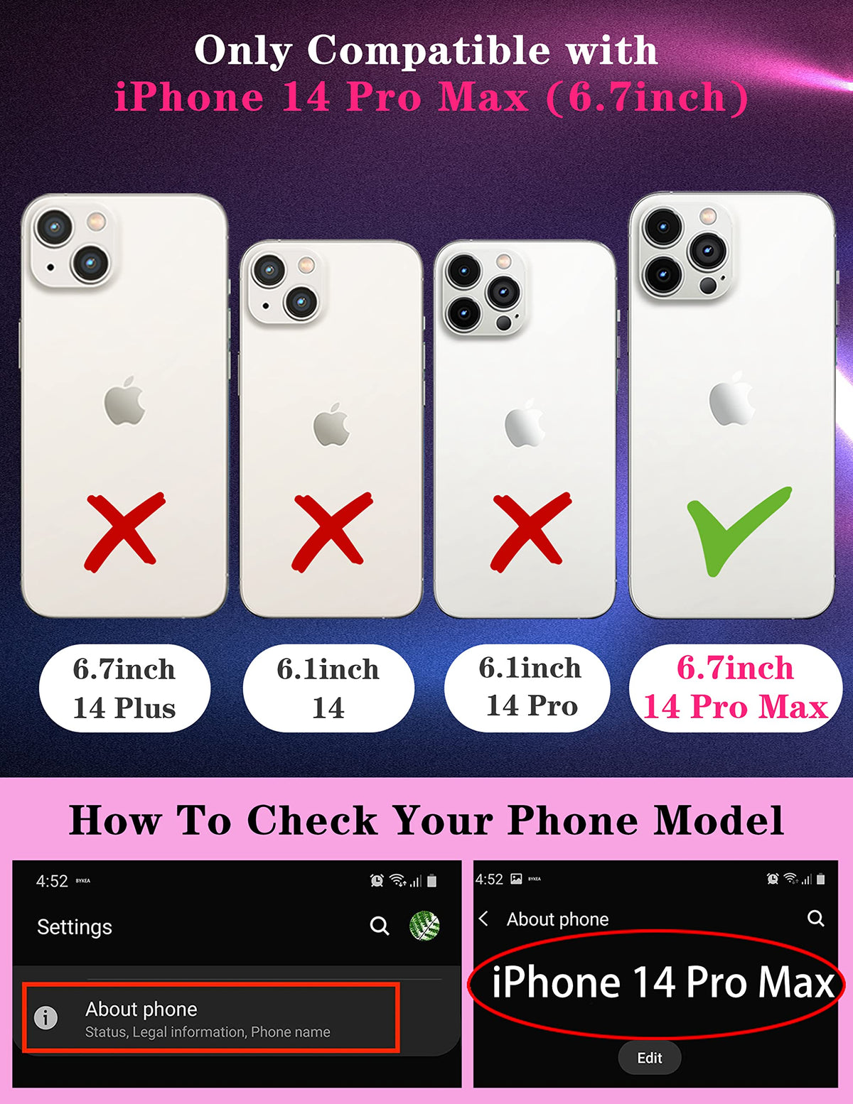 Q: Is this case compatible with iPhone 14 Pro Max?A: Yes, this Goocrux case is specifically designed for the iPhone 14 Pro Max (6.7 inch) and is not compatible with any other iPhone models.