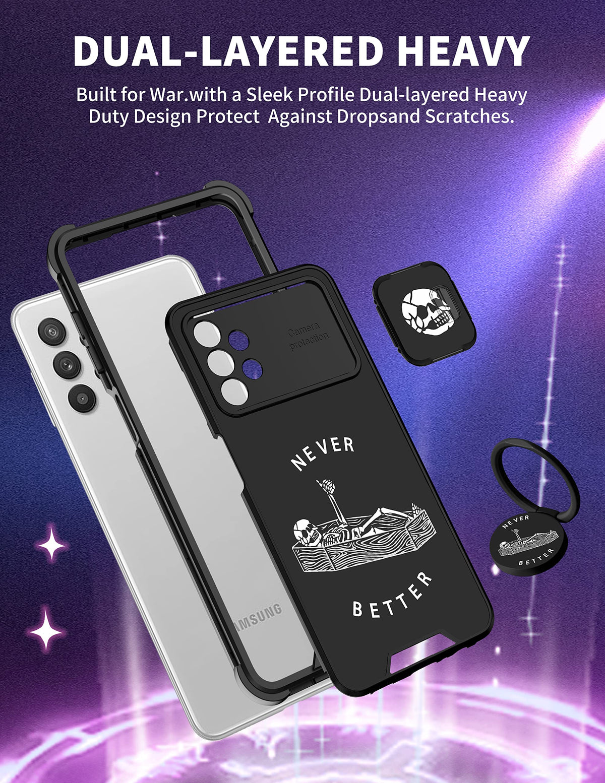Material: High-Quality Thin Hard Pc, Comfortable To The Touch, Compatible With Samsung Galaxy A32 5G (65 Inch) Only Design: Brighter Colorful Pattern Design, Making Your Samsung Galaxy A 32 Phone Looks More Distinctive And More Stylish And Fashionable Advantage: 1 This Samsung Galaxy A32 5G Phone Case Sliding Camera Protection Protects Your Phone From Lens Scratches And A 360-Degree Rotatable Ring Kickstand Allows You To Use Your Phone From Different Angles 2 The Slide Camera Cover Design As A Push Window Can Effectively Protect Your Lens In Daily Life Without Affecting The Use Of The Camera 3 Prevent A32 Samsung Phone Damage From Accidental Drops And Collisions From Daily Use, While Adding Security And Protecting Our Privacy 4 Accurate Opening, Easy Access To Camera, Speakers, Charging Port, Accessory Slot, And Other Ports You Will Get: 1Galaxy A32 Phone Case And 1Rotatable Ring Kickstand