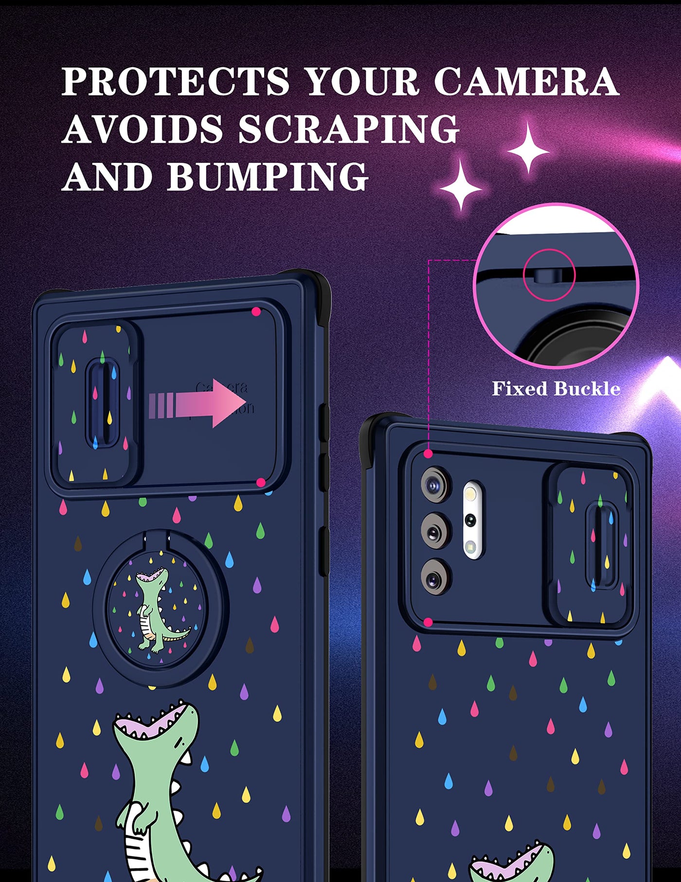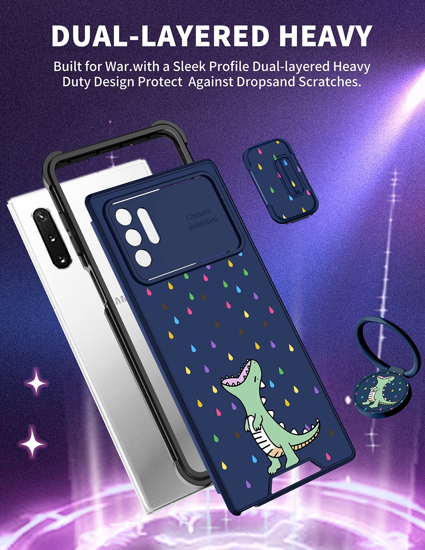 Material: High-Quality Thin Hard Pc, Comfortable To The Touch, Compatible With Samsung Galaxy Note 10 Plus 5G (68 Inch) Only Design: Brighter Colorful Pattern Design, Making Your Samsung Note10 Plus Phone Looks More Distinctive And More Stylish And Fashionable Advantage: 1 This Note 10 Plus Phone Case Sliding Camera Protection Protects Your Phone From Lens Scratches And A 360-Degree Rotatable Ring Kickstand Allows You To Use Your Phone From Different Angles 2 The Slide Camera Cover Design As A Push Window Can Effectively Protect Your Lens In Daily Life Without Affecting The Use Of The Camera 3 Prevent Note10 Plus Phone Damage From Accidental Drops And Collisions From Daily Use, While Adding Security And Protecting Our Privacy 4 Accurate Opening, Easy Access To Camera, Speakers, Charging Port, Accessory Slot, And Other Ports You Will Get: 1Samsung Galaxy Note 10 Plus Phone Case And 1Rotatable Ring Kickstand