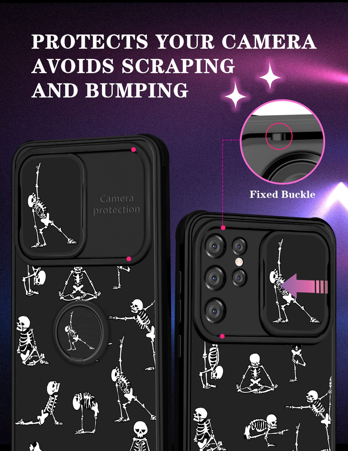 Goocrux (2In1 For Samsung Galaxy S21 Ultra Case Skeleton Yoga Cute Halloween Phone Cover Funny Skull Design With Slide Camera Co