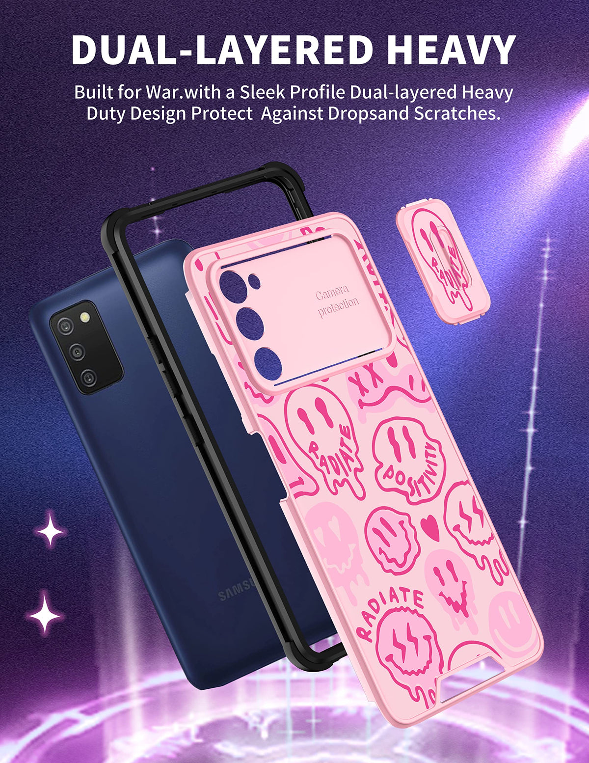 Material:High Quality Thin Hard Pc, Comfortable To Touch, Only Compatible With Galaxy A03S 5G (65 Inch) Advantages1 This Phone Case Galaxy A03S Slide Camera Protection Device Can Protect The Mobile Phone From Lens Scratches 2 The Sliding Camera Cover Is Designed As A Sliding Window, Which Can Effectively Protect Your Lens In Daily Life, But Will Not Affect The Use Of The Camera 3 Prevent The A03S Galaxy Phone From Being Damaged Due To Accidental Fall And Collision In Daily Use, While Increasing Security And Protecting Our Privacy 4 It Supports Wireless Charging You Can Charge Your Phone Without Taking Off The Case, So Your Phone Is Always Charming 5 Open It Accurately To Easily Access The Camera, Speaker, Charging Port, Accessory Slot And Other Ports 6 The Bright Colors And Cute Design Of Case Samsung Galaxy A03S Can Make Samsung A03S Phone Look More Innovative And Vogue, So It Is Also A Good Gift For Family, Relatives And Friends