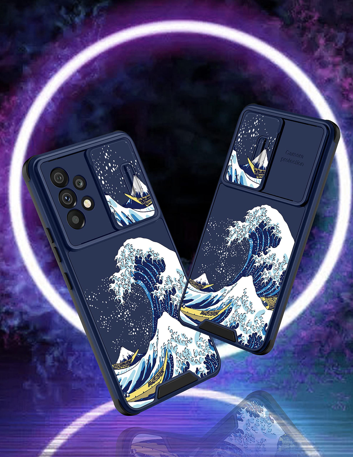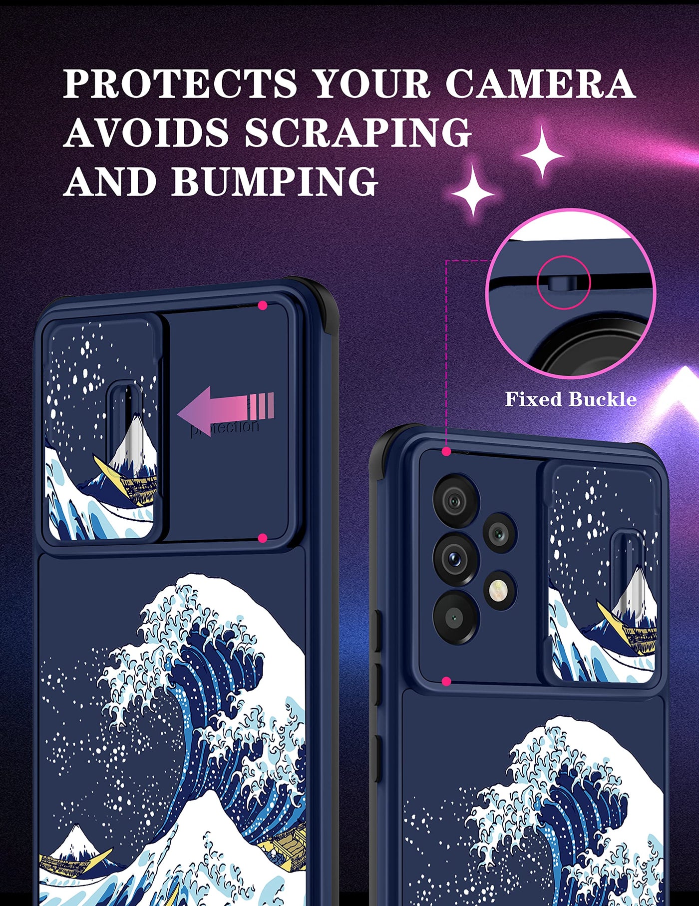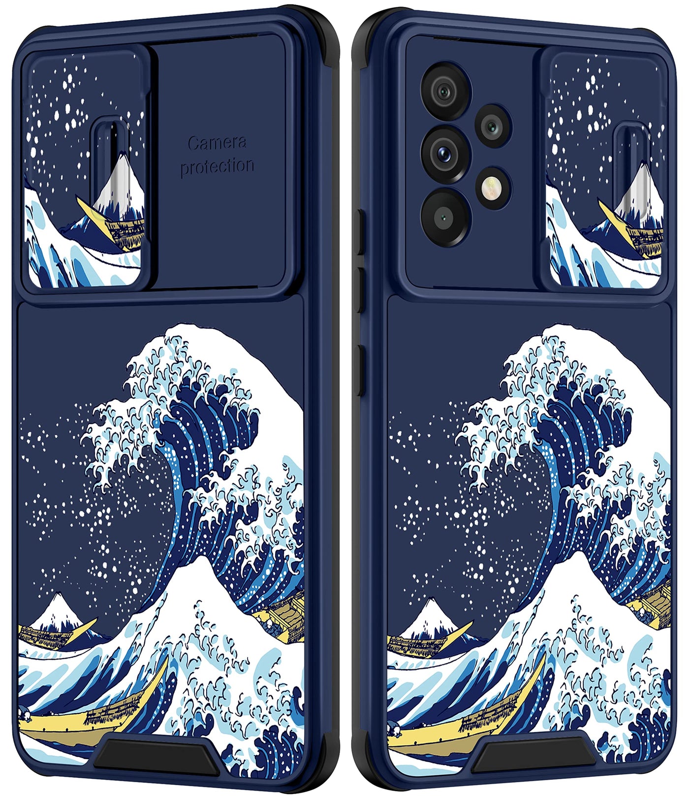 Goocrux For Samsung Galaxy A53 5G Case Waves Women Girls Cute Great Wave Japanese Phone Cover Cool Girly Design Unique With Slid