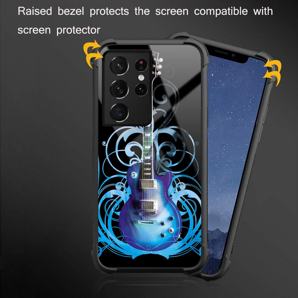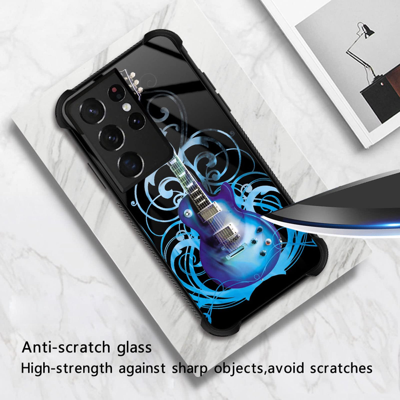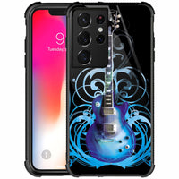 Goodsprout Compatible With Samsung Galaxy S22 Ultra Case,Blue Guitar Style Amazing Pattern Design Shockproof Anti Scratch Hard P