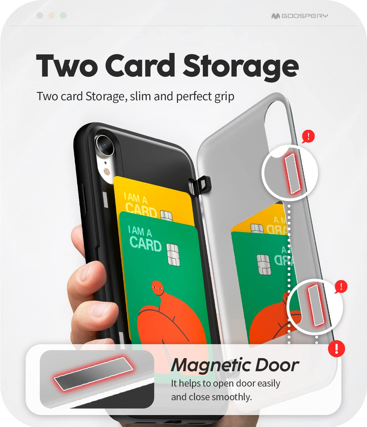 Strong>Compatible Phone Models : Apple Iphone Xr (2018)Strong> Card Holder - The Card Storage Part Is Designed With A Curve, So You Can Store 2 Cards From Bottom To Top More Easily Dual Layers - Hybrid Case Can Protect Your Device More Firmly With Excellent Elasticity Of Tpu And Hard Pc Material From External Impact Hidden Mirror - Use The Mirror Easily Anywhere, Anytime By Attaching It To The Inside Of Back Cover (Please Remove The Scratch Resistant Film Before Use) Magnetic Door - Magnetic Closure Makes Easier To Open And Close Back Cover If You Use Your Card To Hold Back Cover As A Stand, You Can Enjoy Video Watching And Games Designed For Apple Iphone Xr Case (2018) Strong>Goospery Incstrong> Was Launched As The Us Branch Of Goospery Corporation (Based In South Korea) With One Aim To Be Your Premier Mobile Accessories Provider Our Goospery Case Series Is Widely Recognized For Trusted Quality, Creative Designs, And Competitive Prices We Believe In Engaging With Our Customers In Order To Continually Improve The Look And Performance Of All Of Our Products And With This Same Mindset, We Offer A Full Line Of Cutting-Edge Smartphone And Tablet Cases Our Worldwide Network Of Branches Gives Us A Global Presence That Allows Us To Keep Up With The Latest Trends And Streamline Large Production To Keep Costs Low When You Choose Goospery, You Get A Better Quality Case That Meets Your Needs With Innovative Designs And Sensible Prices Strong>* Actual Product Colors May Vary Slightly From Photos Due To Lighting Used In Photo Shoots Or Different Monitor Settingsstrong>