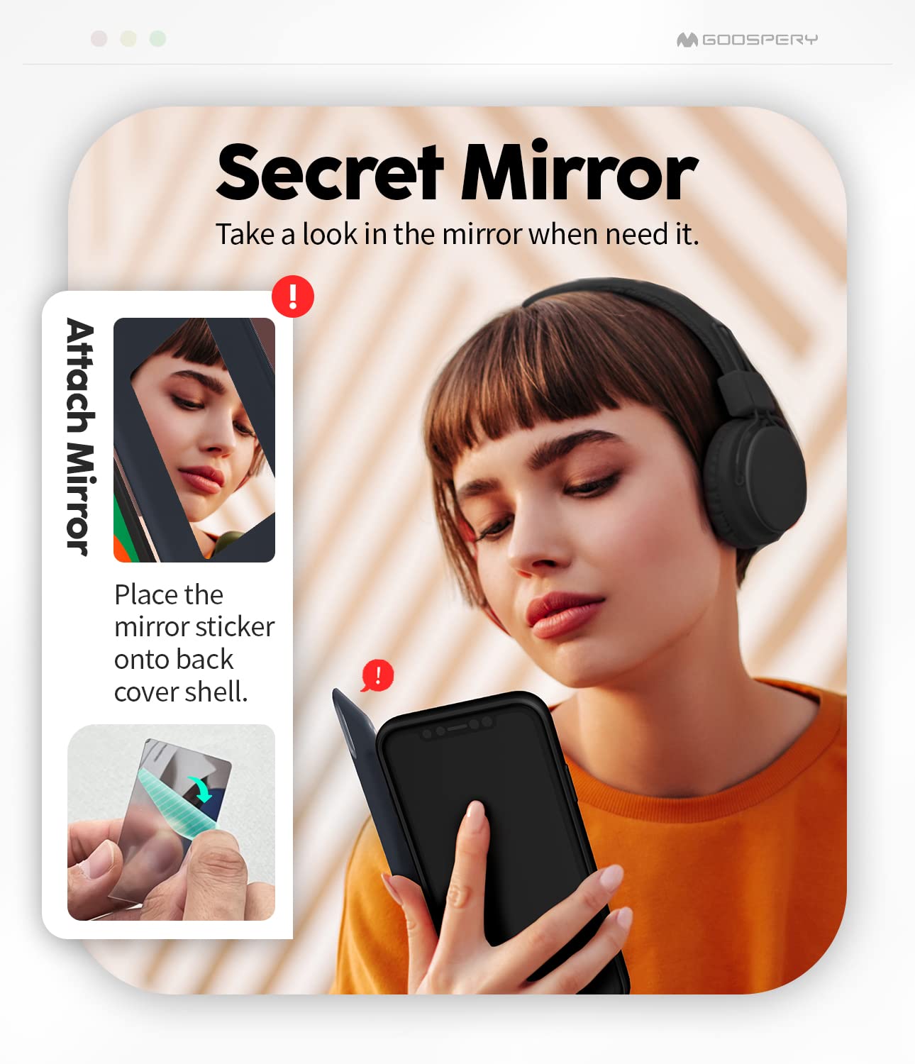 Q: Does the case have a built-in mirror?A: Yes, the GOOSPERY iPhone XR Wallet Case includes a hidden mirror inside the back cover, allowing for quick checks on-the-go. Remember to remove the scratch-resistant film before use.