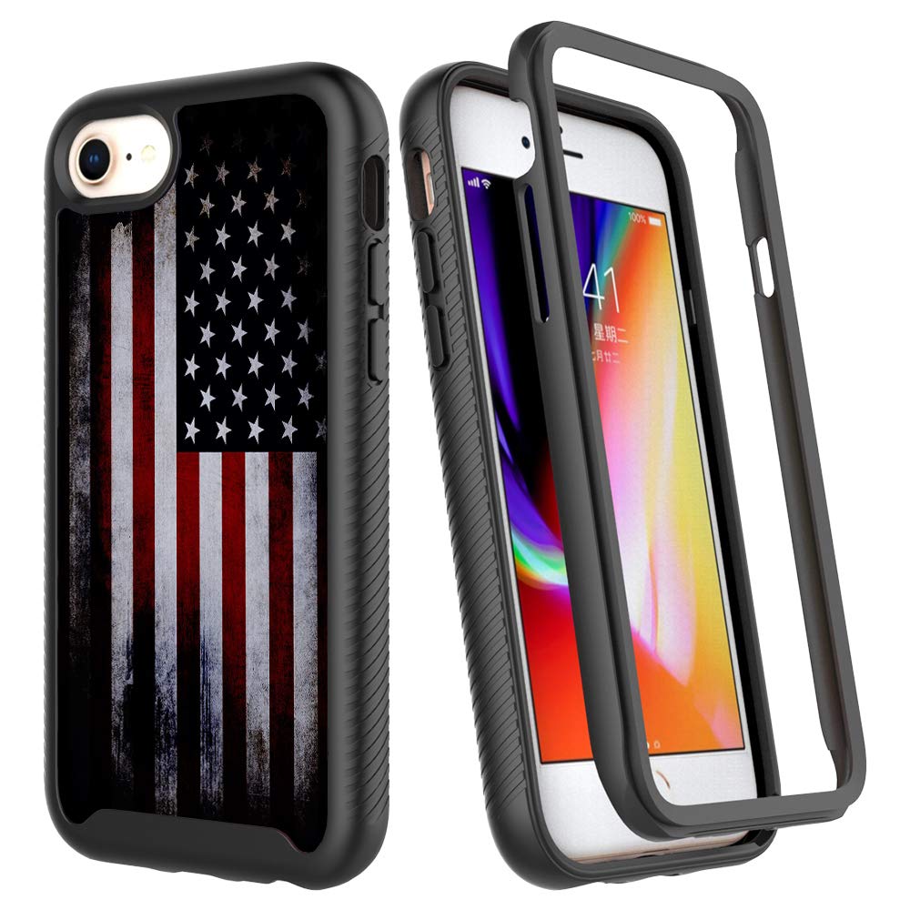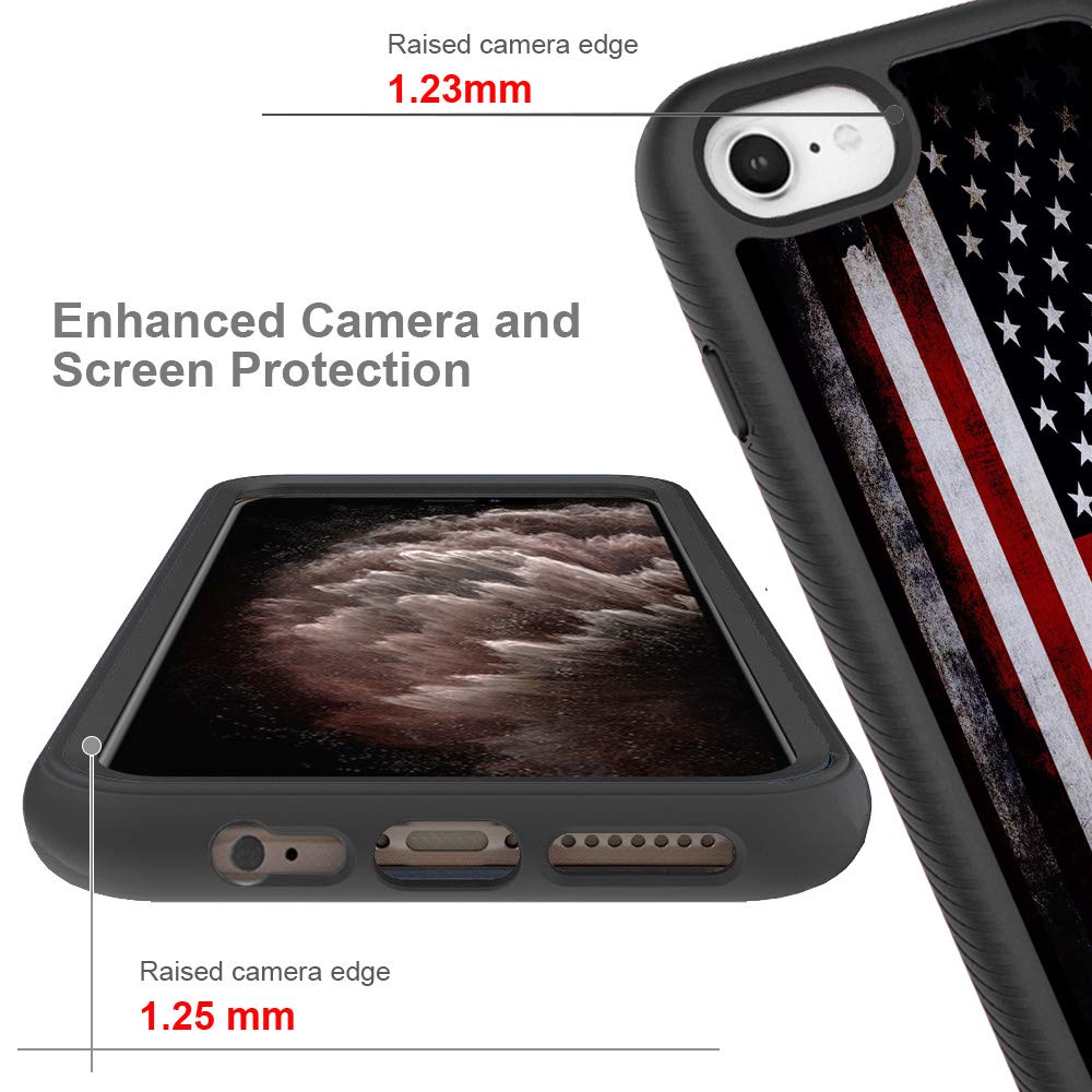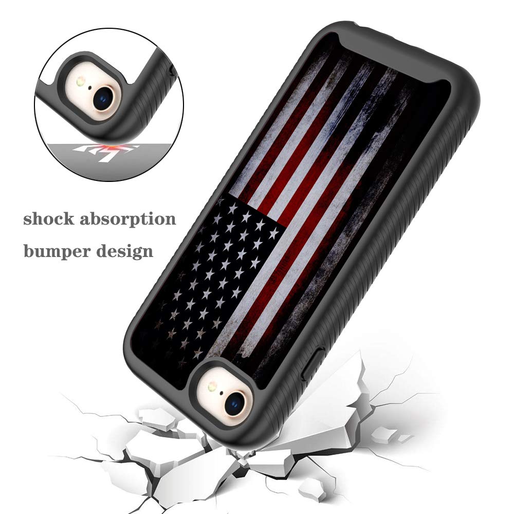 Gugu6Ji Black Vintage Usa American Flag Patriotic Design Compatible Iphone Se Case,Iphone 7 Case,Iphone 8 Case,Shockproof Rugged