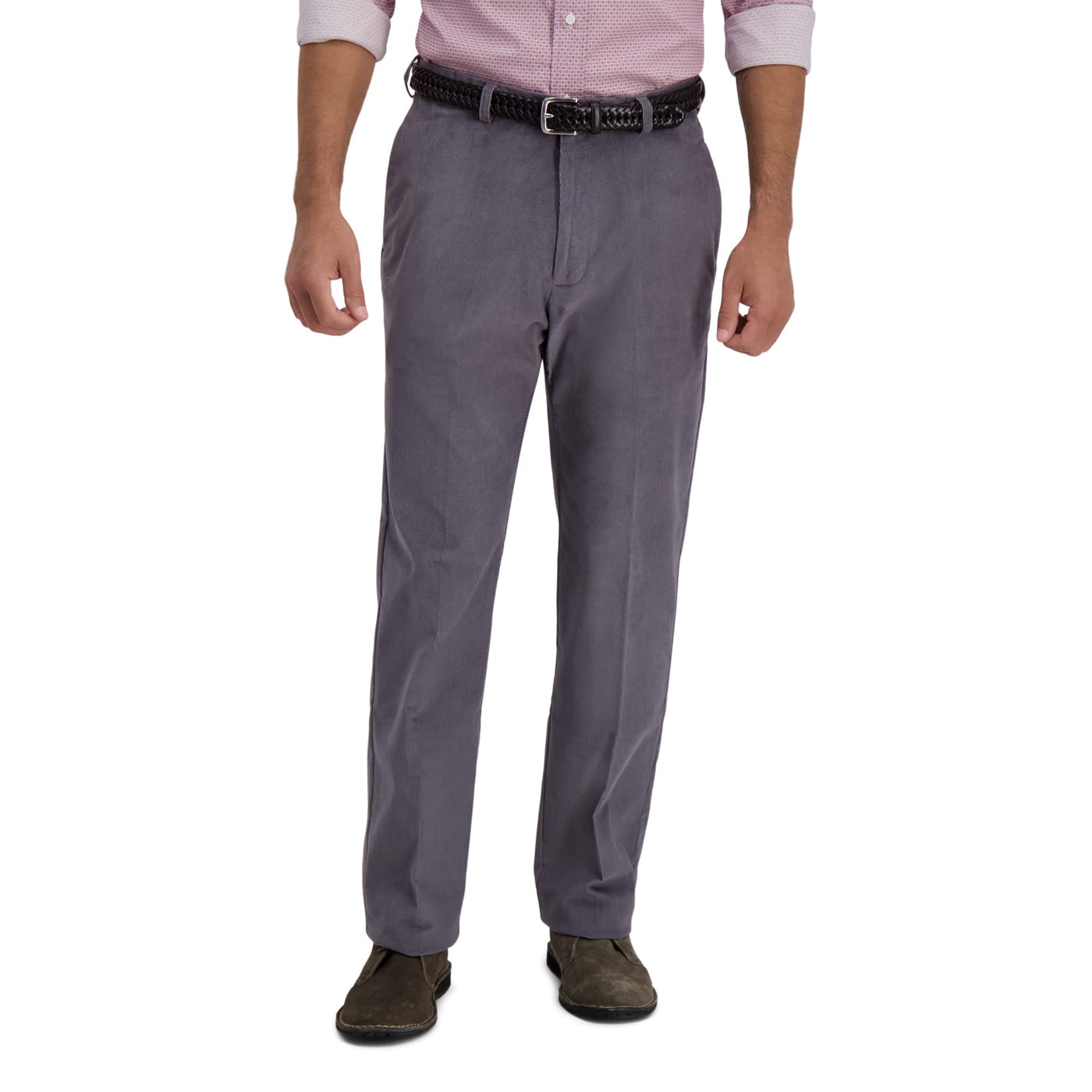 Haggar Mens Stretch Corduroy Expandable Waist Classic Fit Flat Front Pants, Charcoal, 36W X 30L Us