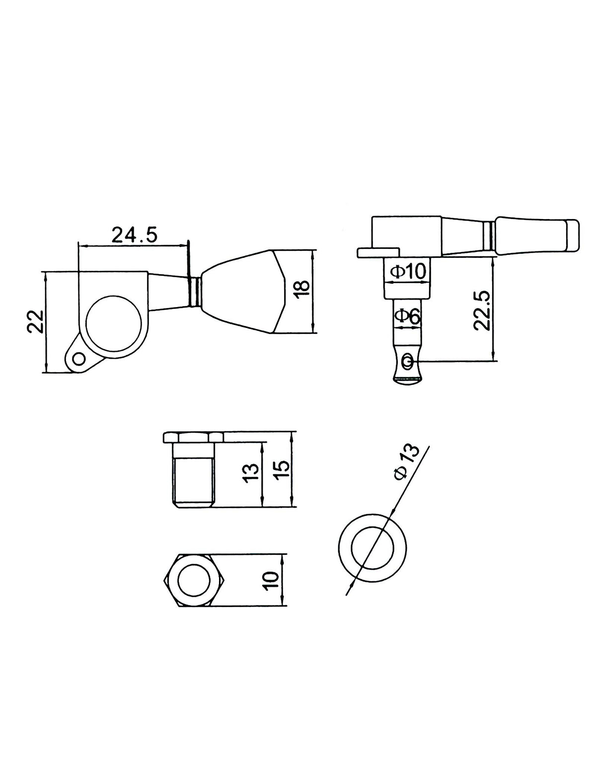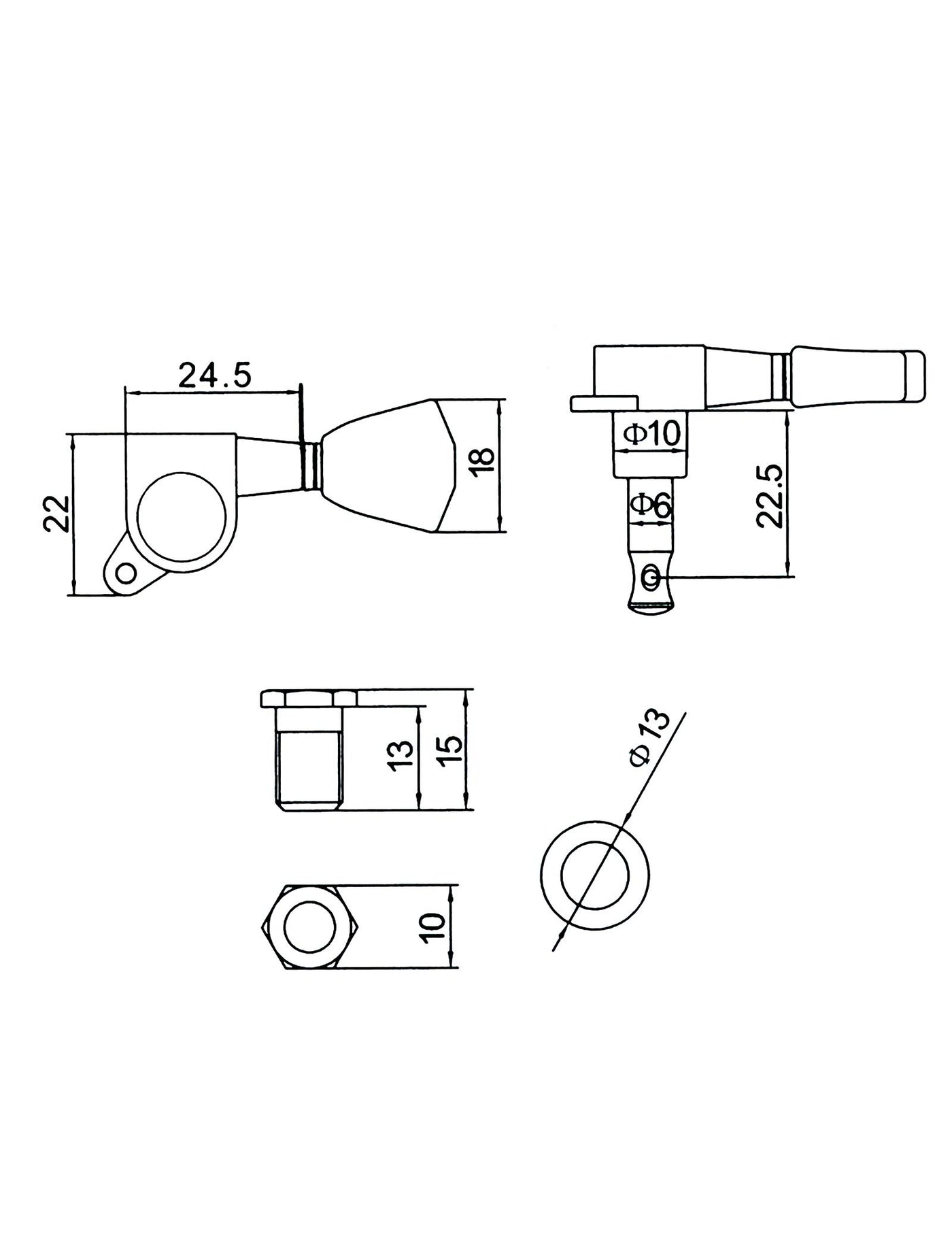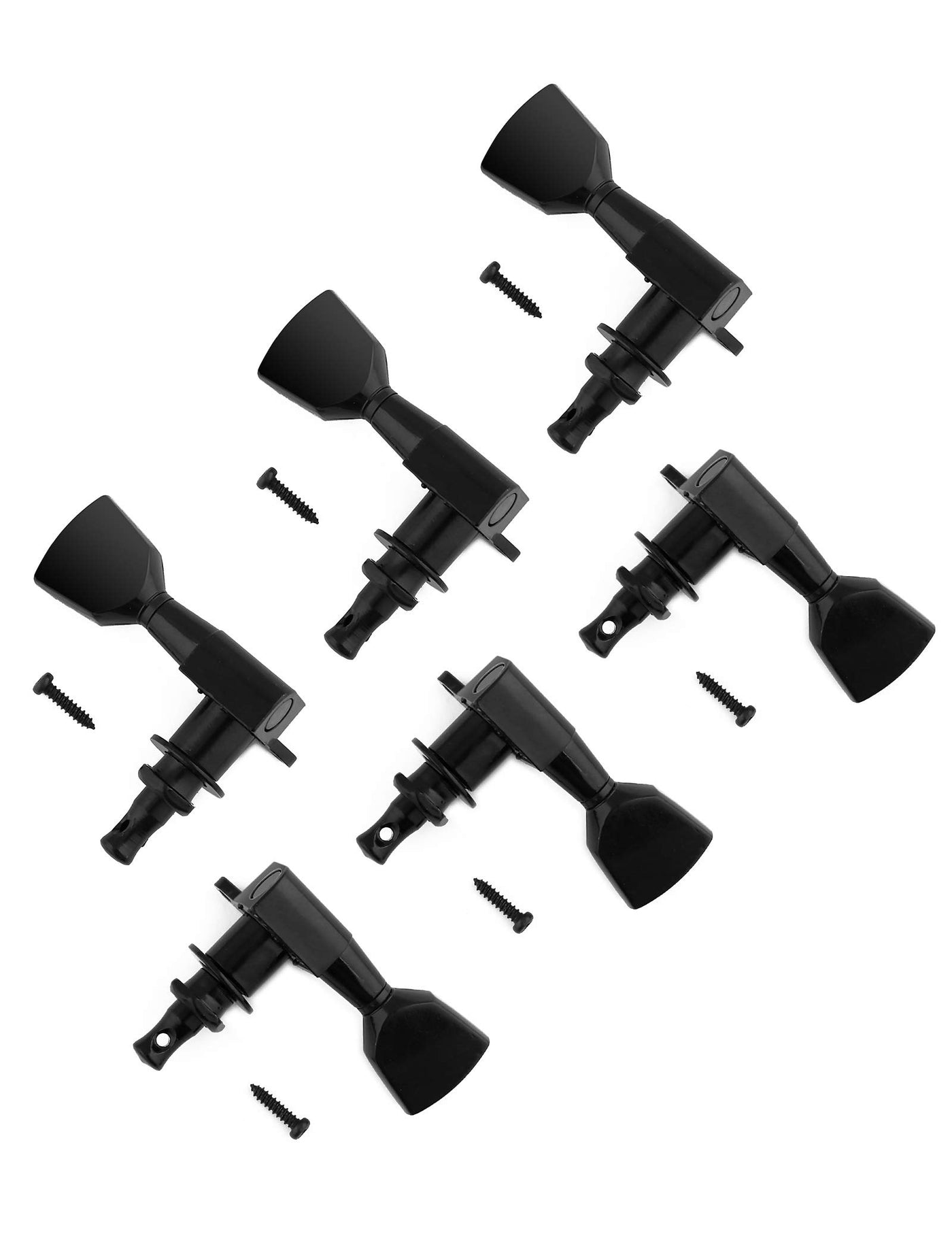 Product Description These Tuners Are Quality Tuners Made Of Zinc Alloy Construction Compatible With Steel String (Electric Or Acoustic) Guitar Set Of 6Pcs Machine Heads With Mounting Screws Bushings And Washers 10Mm (13/32'')-Diameter Peg Holes Required Heavy Duty Internal Gear & Standard Size Location: 3 Left And 3 Right Handed Tuning Pegs Color: Black Gear Ratio: 1:14 Brand: Holmer Package Include 3 X Left Guitar Machine Heads 3 X Right Guitar Machine Heads 6 X Ferrules 6 X Screws Note Due To The Difference Between Different Monitors, The Picture May Not Reflect The Actual Color Of The Item Due To Manual Measurement, There May Be 1-2Mm Error In Size