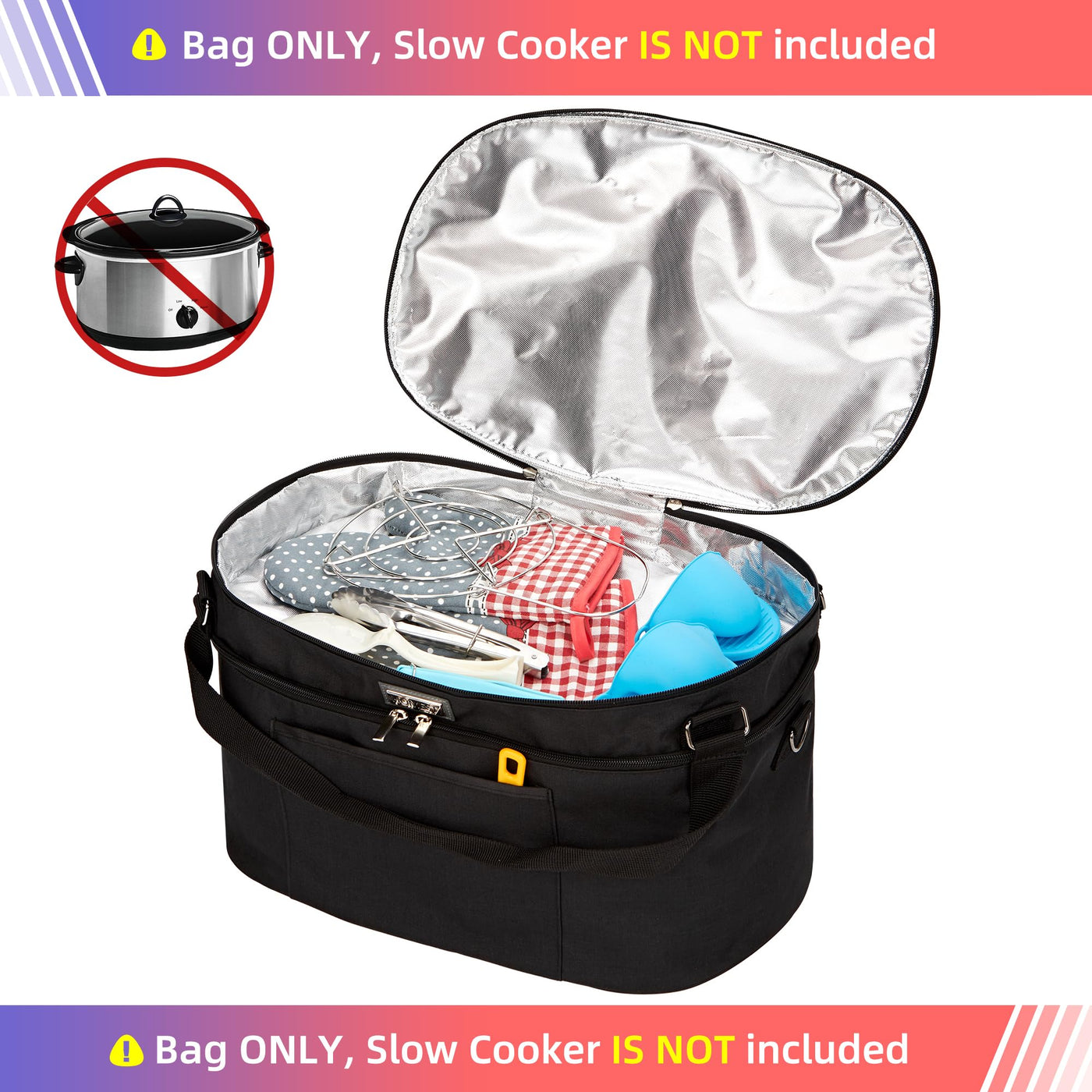 Homest Slow Cooker Bag For Crock Pot 6 8 Quart, Insulated Travel Carrier With Easy To Clean Lining, Carry Case With Top Zip Comp