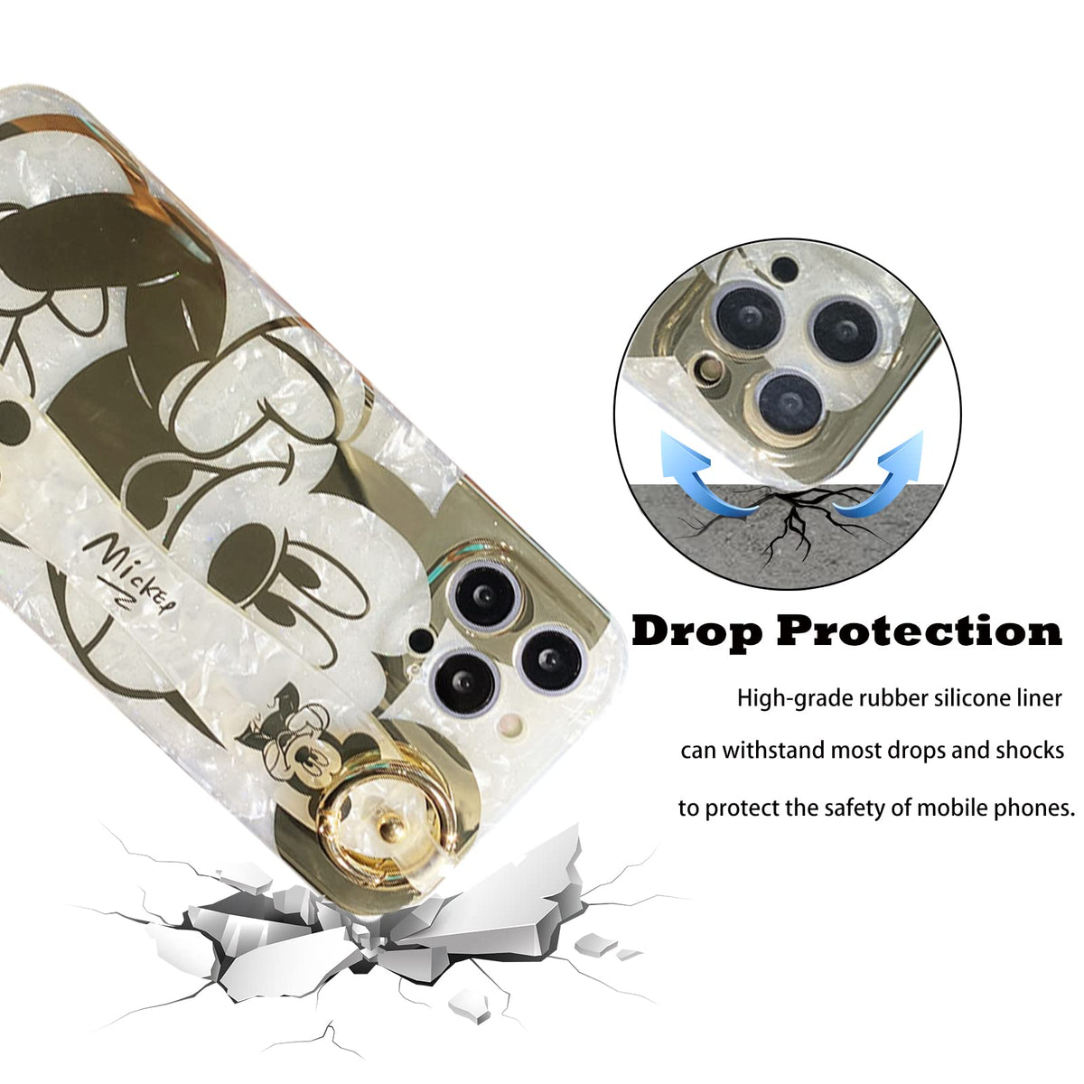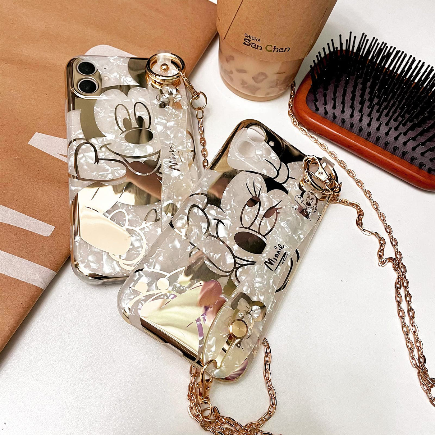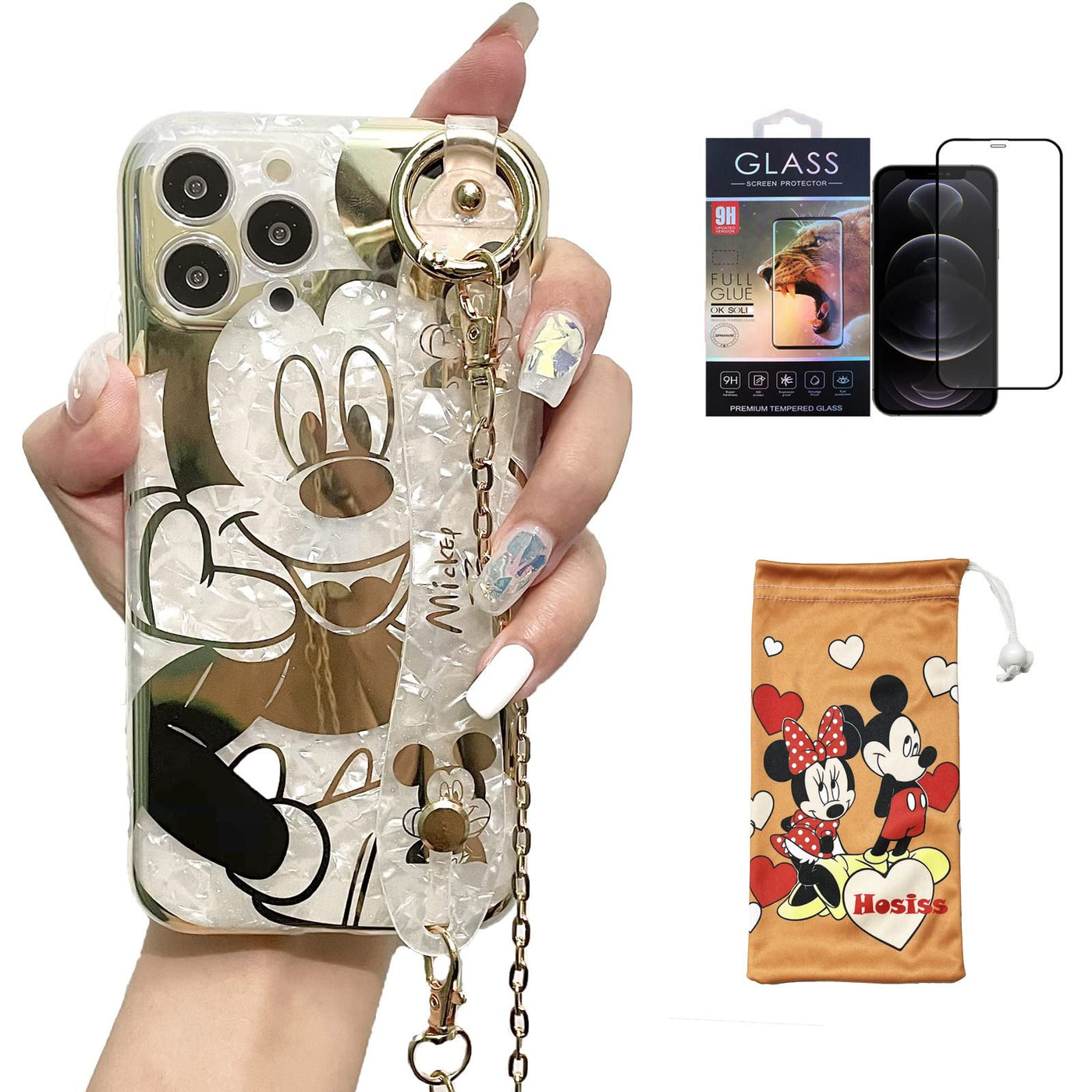 Hosiss Cartoon Case For Iphone 13 Pro 6.1 '' With Hd Screen Protector, Mickey Mouse With Wrist Strap Kickstand Metal Chain Strap