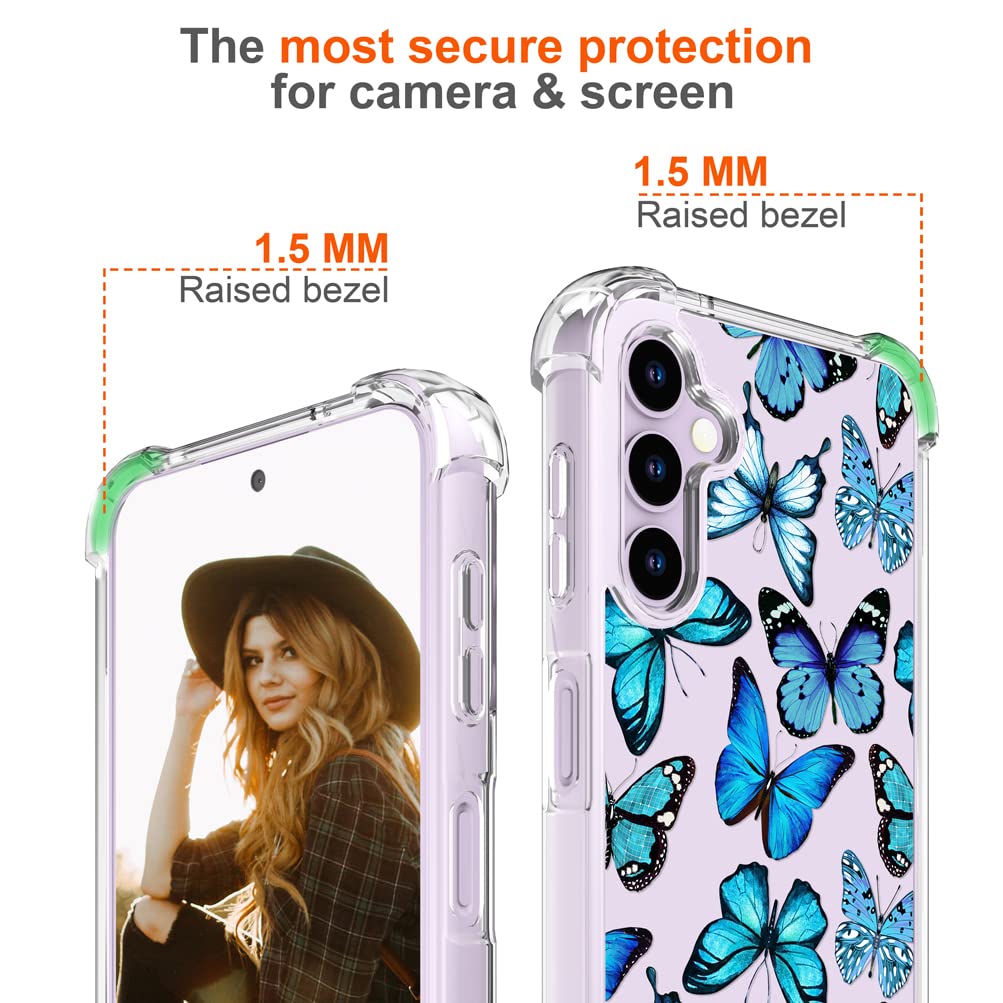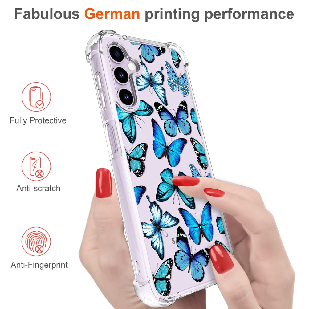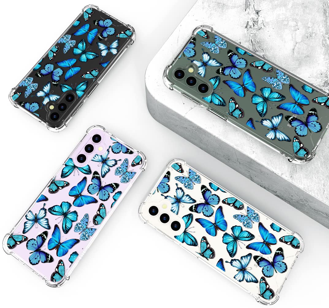 Hungo Compatible With Samsung Galaxy S23 Plus Case Butterfly Cute Design Blue,Aesthetic Girly Designer For Women Girls Butterfly
