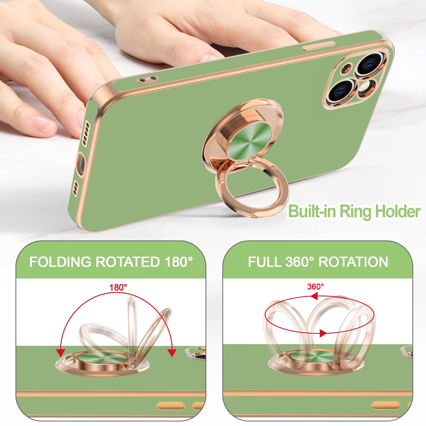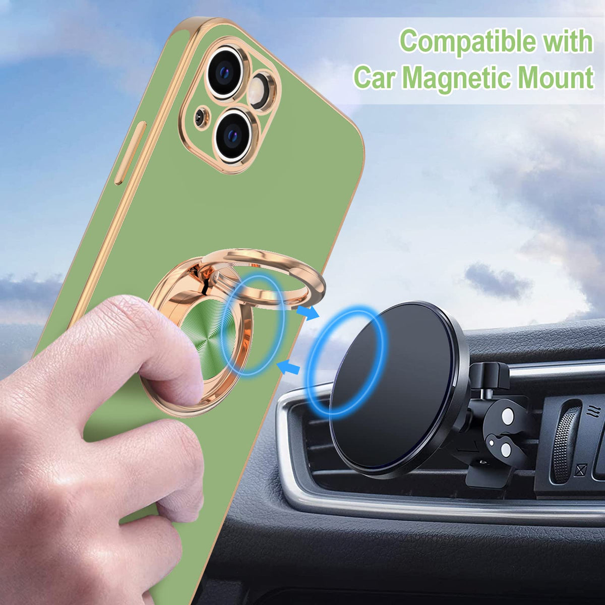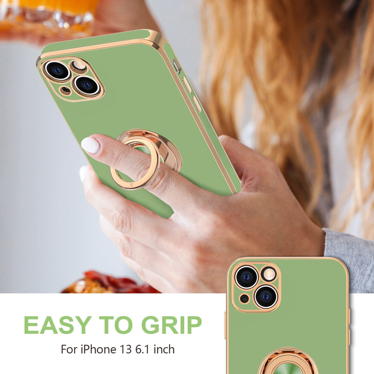 Hython Case For Iphone 13 Case With Ring Stand [360 Rotatable Ring Holder Magnetic Kickstand] [Plated Rose Gold Edge] Slim Sof