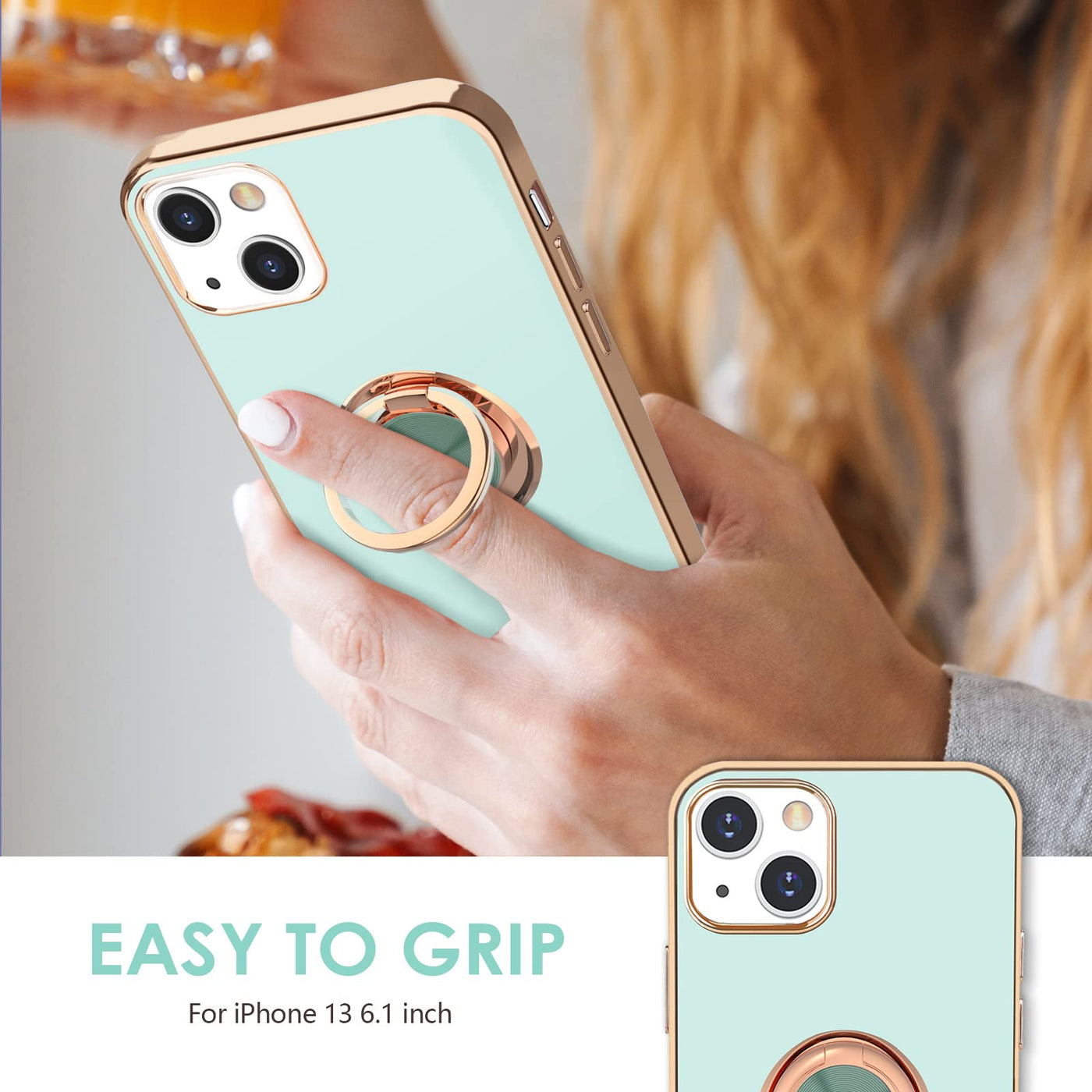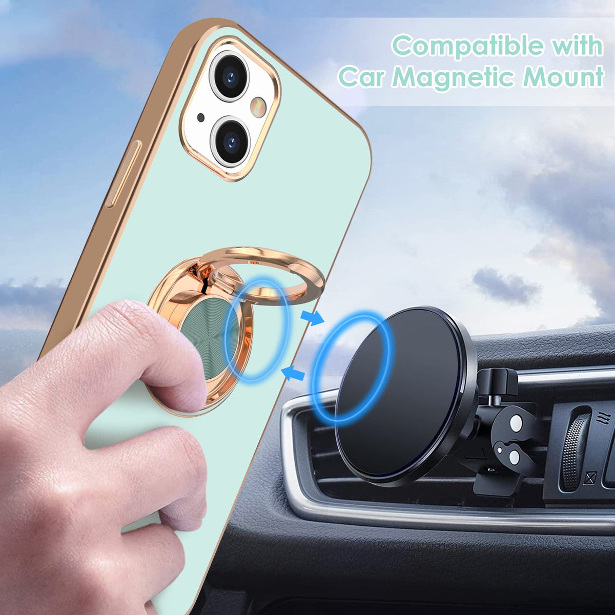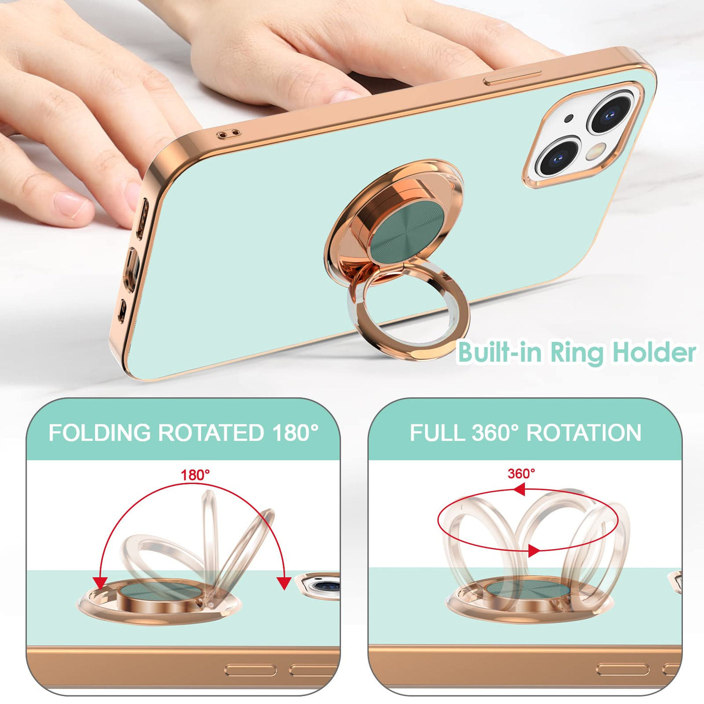 Hython Case For Iphone 13 Case With Ring Stand [360 Rotatable Ring Holder Magnetic Kickstand][Support Car Mount] Plating Rose