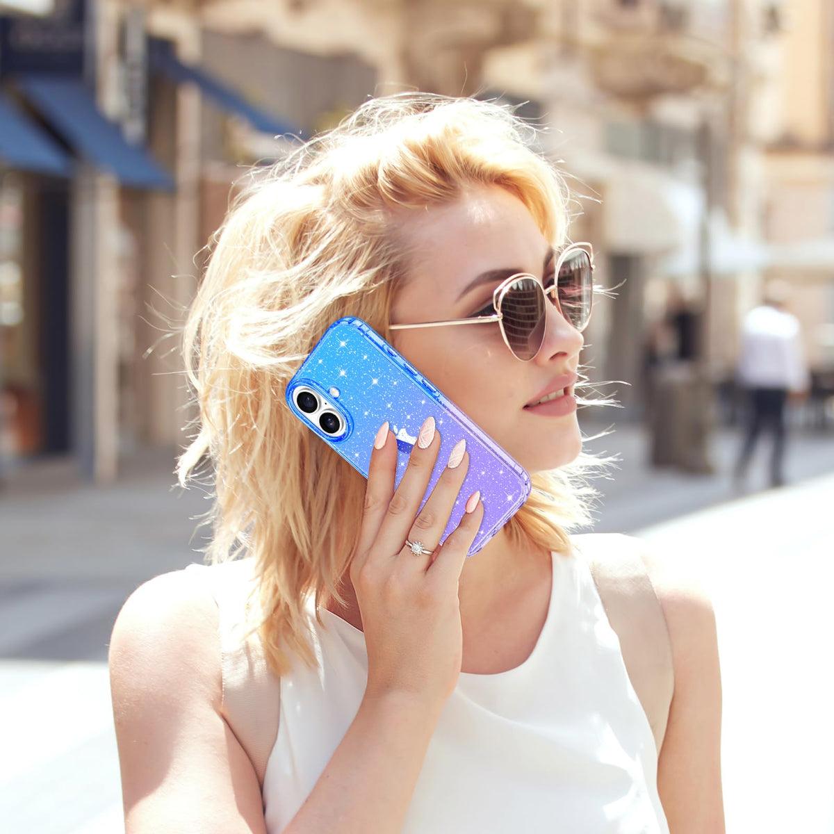 Hython Case For Iphone 16 Plus Case Glitter, Clear Glitter Sparkly Shiny Bling Sparkle Cute Cover, Anti Scratch Soft Tpu Slim Fi