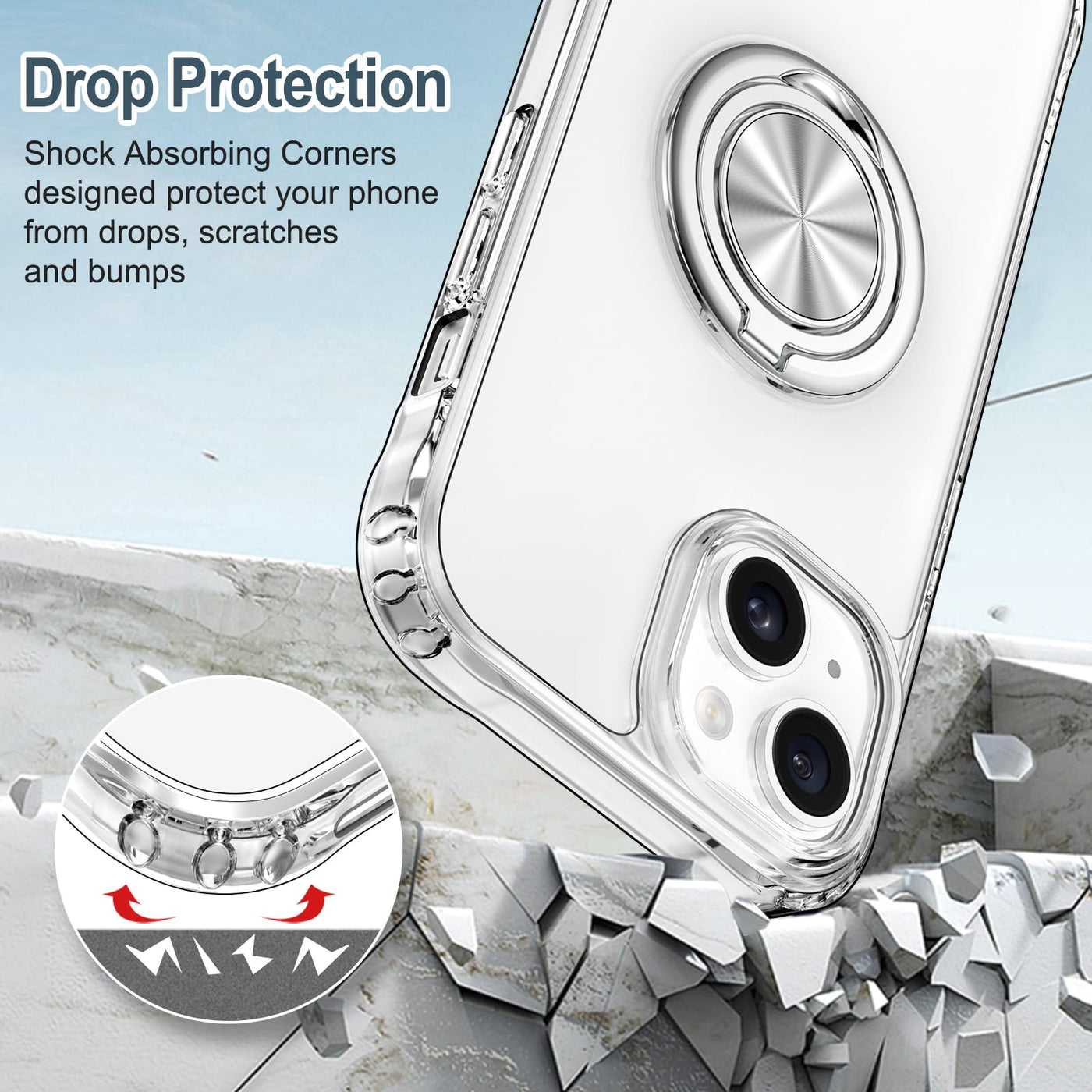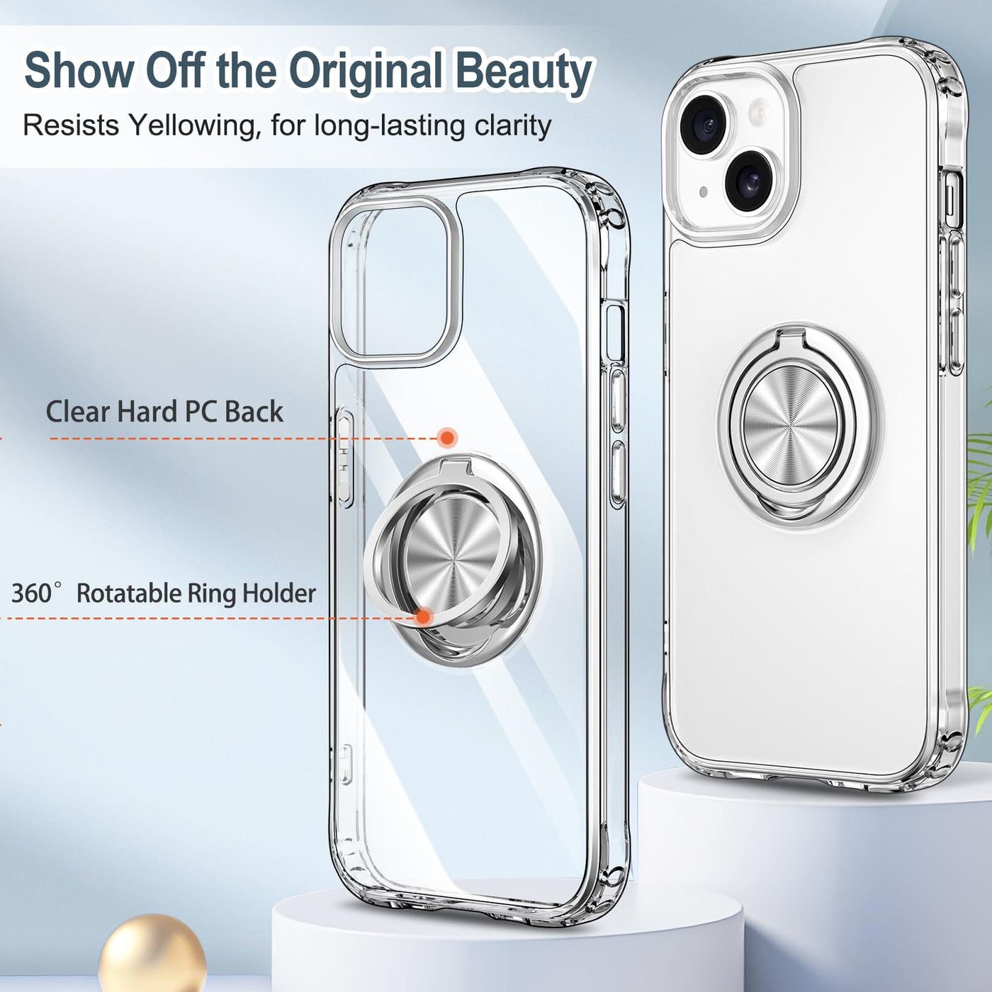 Hython Clear For Iphone 15 Plus Case With Ring Stand [360 Rotatable Ring Holder Magnetic Kickstand] [Support Car Mount] Transpar