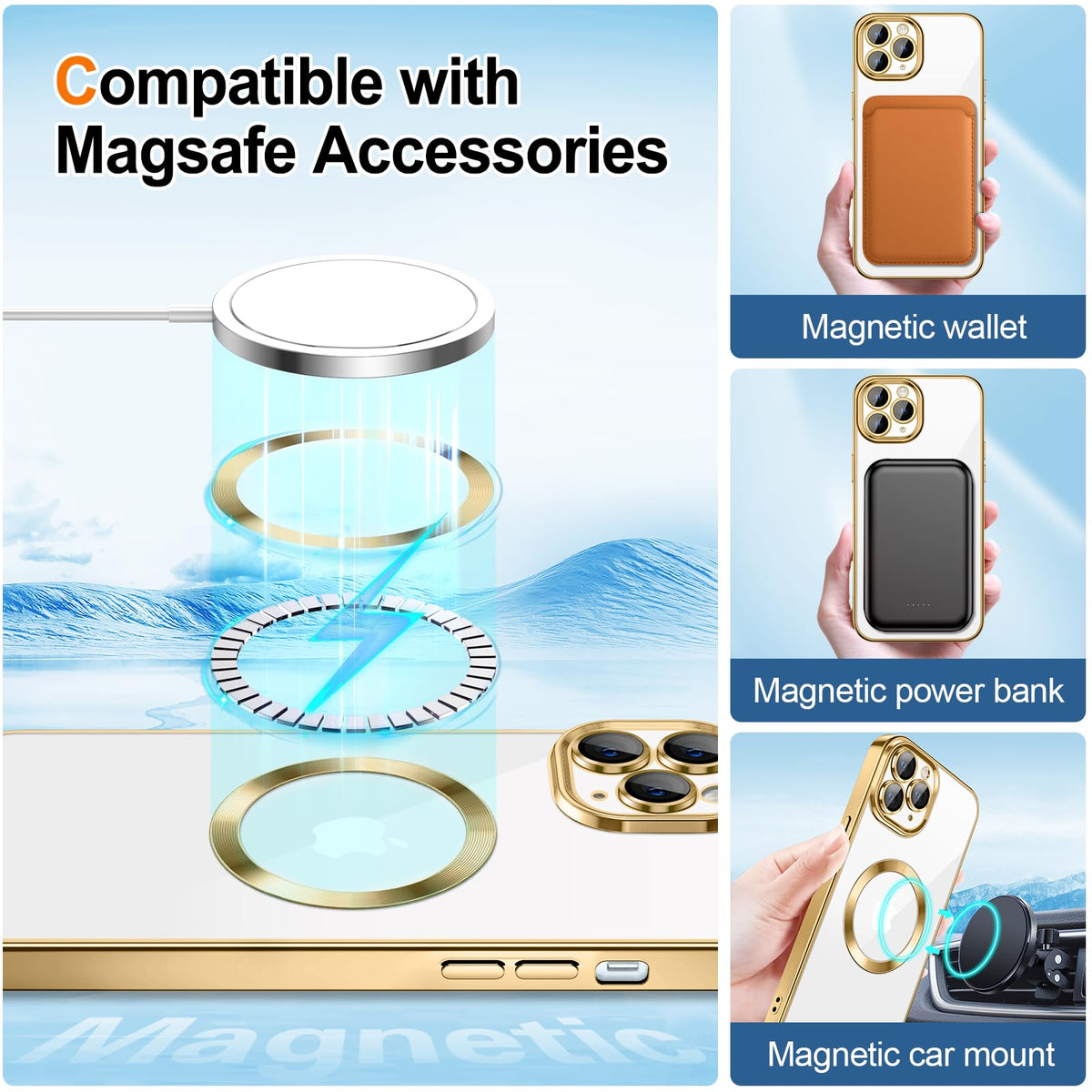 Hython For Iphone 11 Pro Max Case Clear Magnetic Glitter Phone Cases [Compatible With Magsafe] Full Camera Lens Protector Slim G