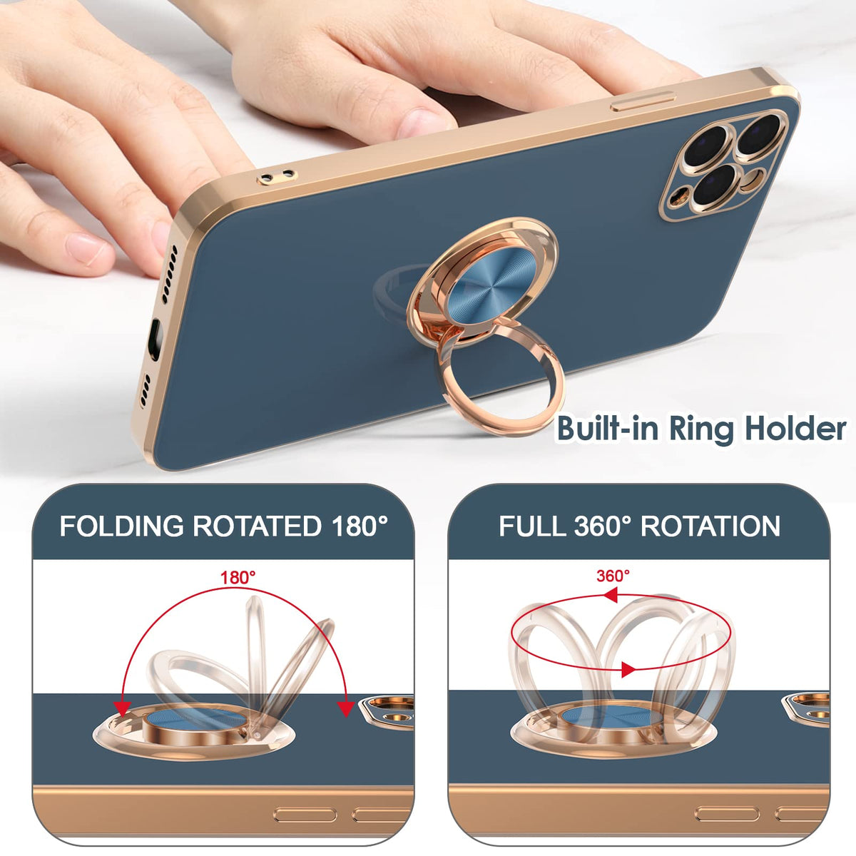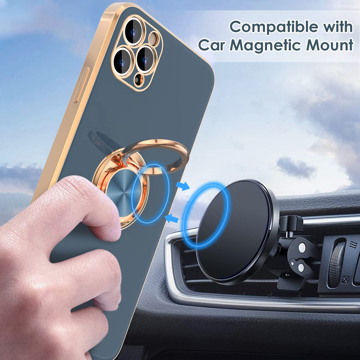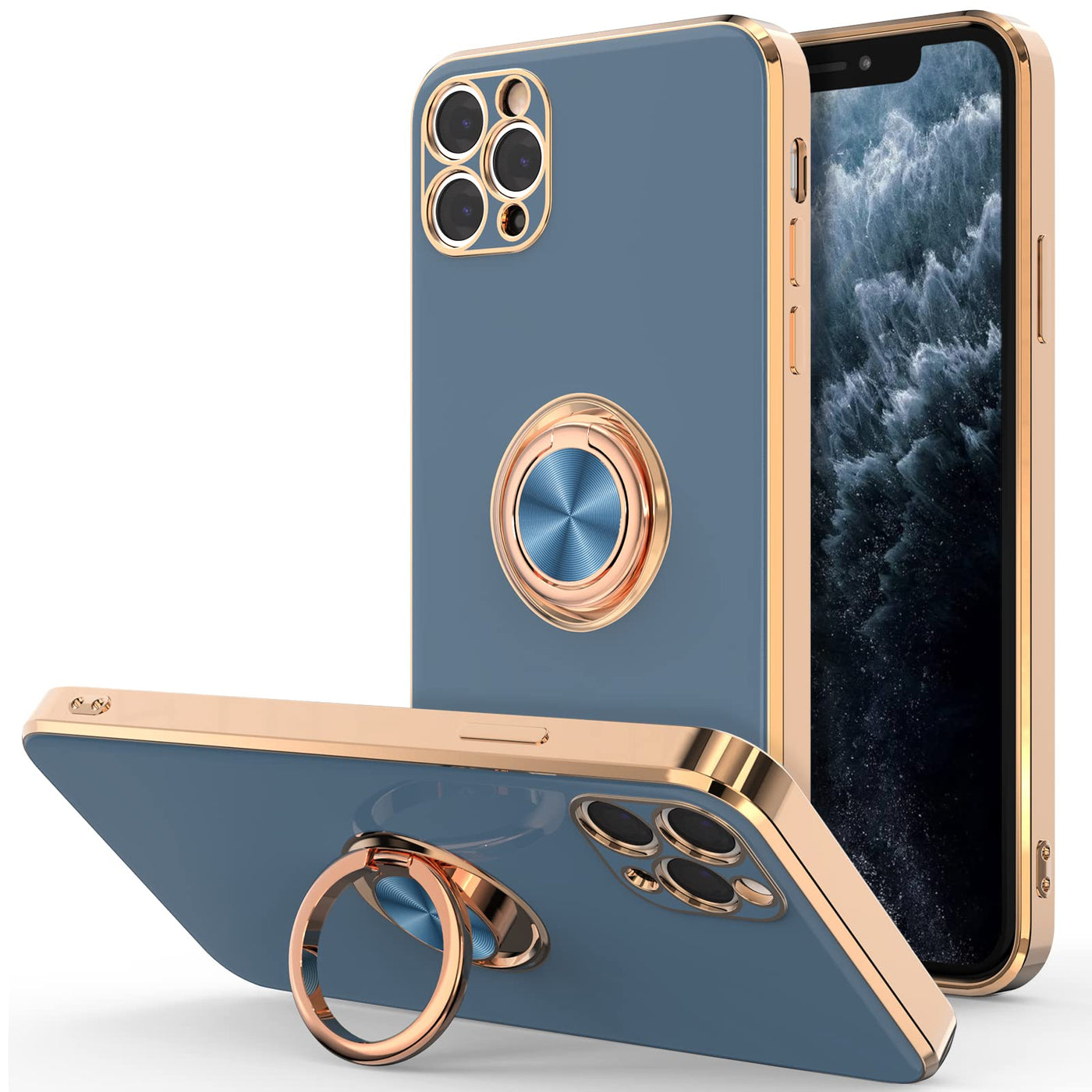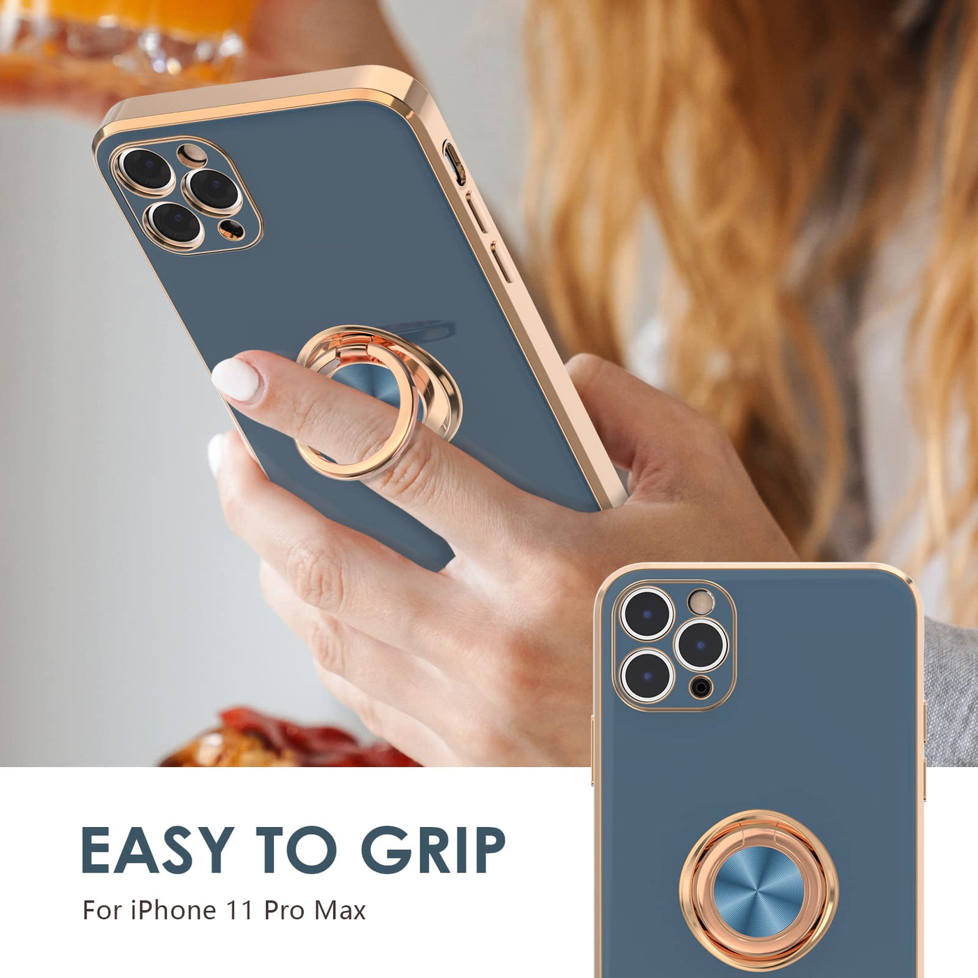Hython For Iphone 11 Pro Max Case With Ring Stand, Plating Rose Gold Edge 360 Rotatable Ring Holder Magnetic Kickstand Cover, Sl