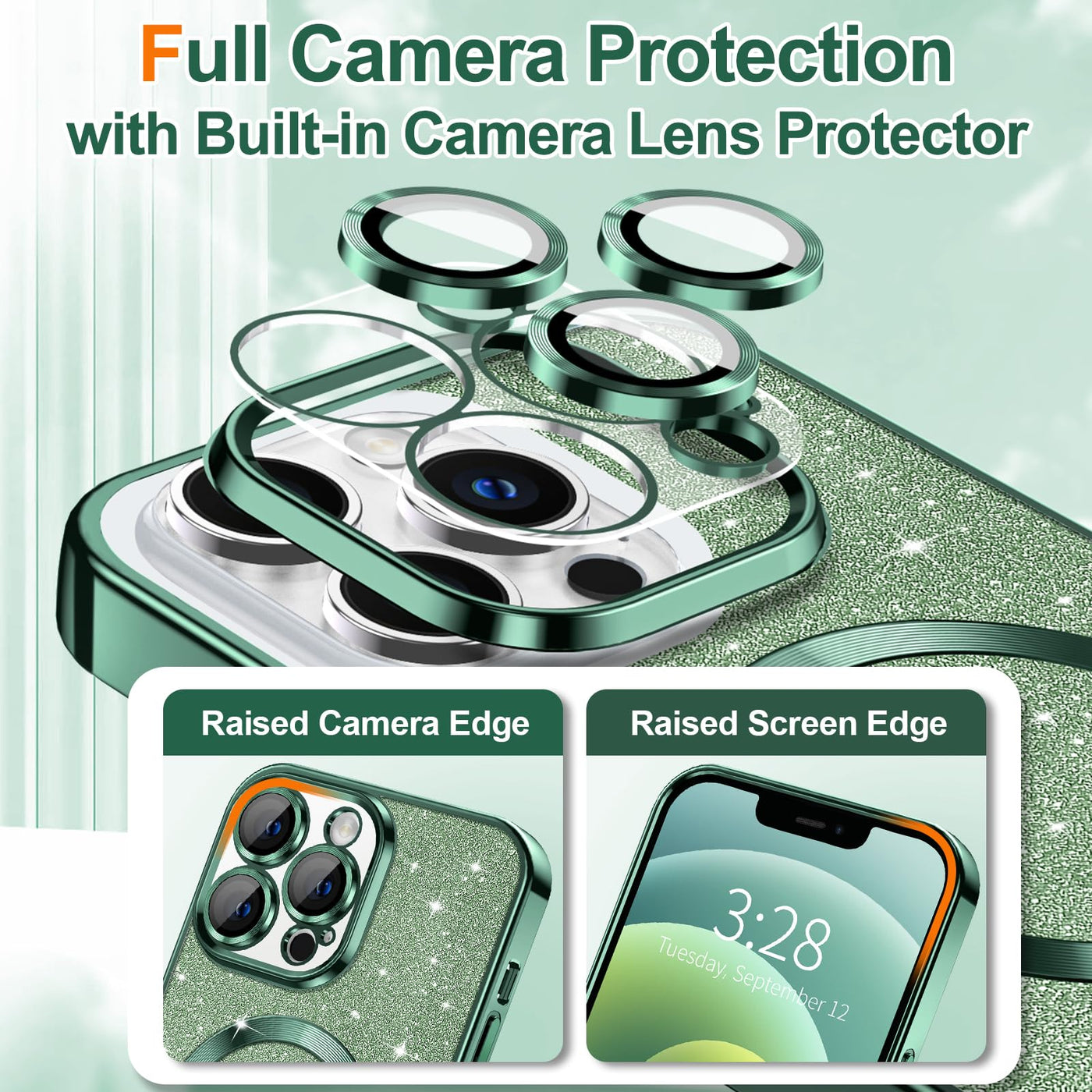 Hython For Iphone 12 Pro Case Glitter, Clear Magnetic Phone Cases With Camera Lens Protector [Compatible With Magsafe] Bling Spa
