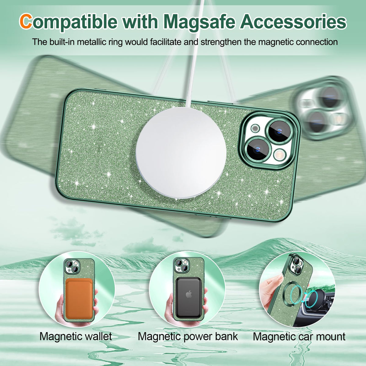 At Hython, We Strive To Provide Our Customers With The Best Products And Services. The Products We Provide Are Beautiful, Simple, Functional And Inexpensive. Features: - Compatible With Apple Iphone 13 6.1 Inch (2021 Released), Supports Wireless Charging - [Compatible With Magsafe Accessories]: This Luxury Magnetic Iphone 13 Case Has A Built-In Metallic Ring For Stable Adsorption; Works Great With A Power Bank, Wallet, Magnetic Car Mount, Wireless Charger, And Phone Ring Holder; Strong Magnetic Power, Won'T Fall Easily - [Clear & Glitter Design]: This Sparkle Iphone 13 Phone Case Is Designed To Be Clear With A Piece Of Glitter Paper; The Stunning Glittery Part Can Be Removed And It Is Optional To Use The Glitter Paper Insert; Very Easy To Take Out If You Want To Change The Look; You Can Also Decorate The Phone Case With Your Favorite Picture And Drawing - [Full Body Protection]: Full Camera Coverage And Built-In Camera Lens Protector Provide Comprehensive Protection For Your Iphone 13; The Sufficient Raised Lip Protects The Front Screen Lenses From Touching A Surface When Placed Down; The Shockproof Bumper Corners Can Protect Your Phone Against Daily Drops And Cracks - [Slim Fit & Metallic Finish]: Made Of Soft Flexible Tpu; Fits Snugly With Your Phone, Not Bulky But Protective; Precise Cutouts For All Ports, Buttons, Camera, And Speakers; The Metallic Electroplated Edge Finish Creates A Sleek, Attractive, Gorgeous, And Stylish Look Customer Service: If You Meet Any Questions During Shopping, Please Contact Us, We Will Help You Resolve Them And Make Things Right Until You Are Satisfied