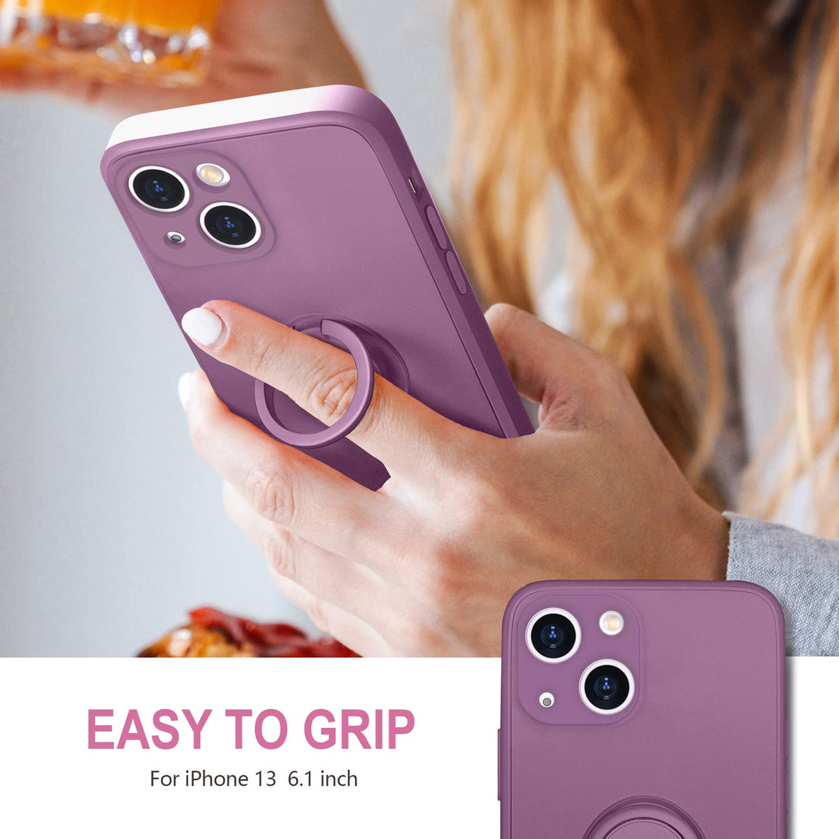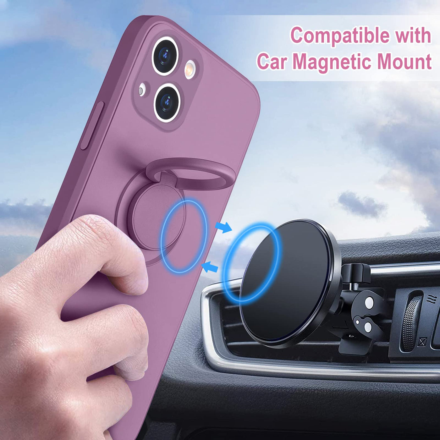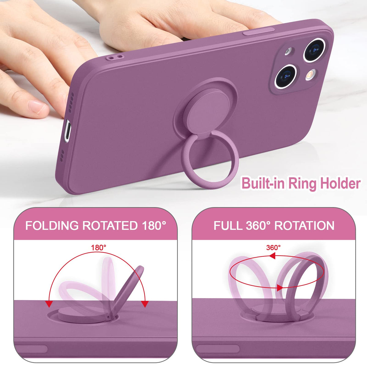 Hython For Iphone 13 Case With Ring Stand [360Rotatable Ring Holder Magnetic Kickstand] [Support Car Mount] Slim Soft Rubber Sho