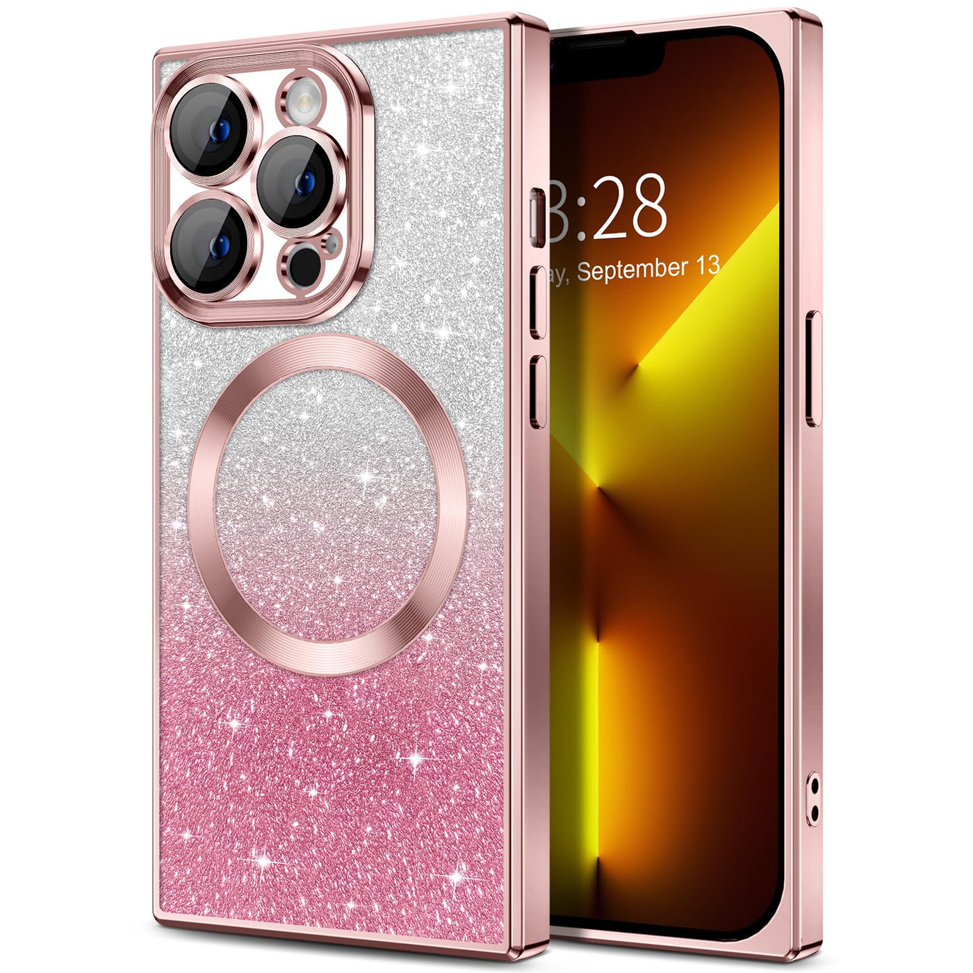 Hython For Iphone 13 Pro Case Clear Magnetic Glitter Phone Cases [Compatible With Magsafe] Full Camera Lens Protector Gradient S