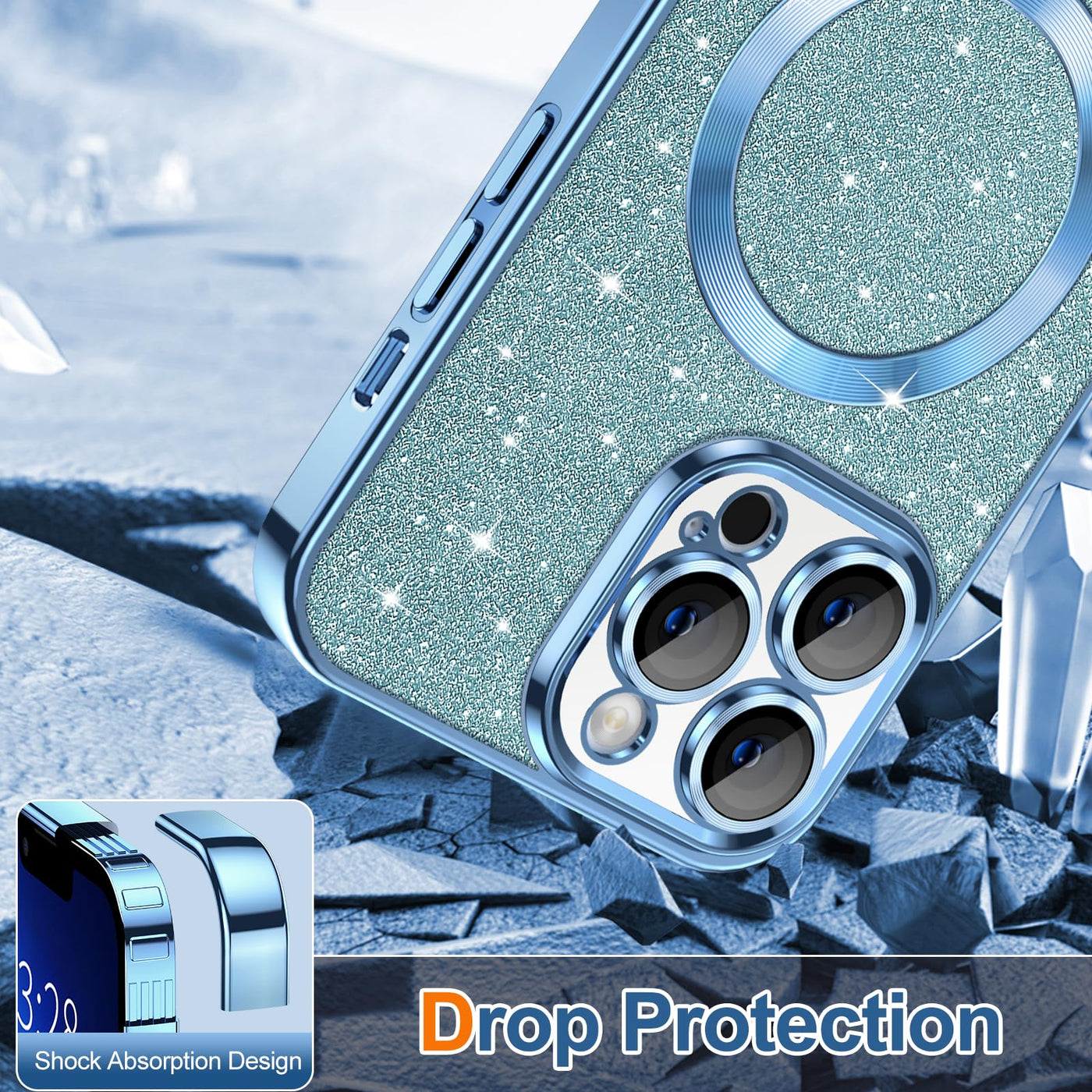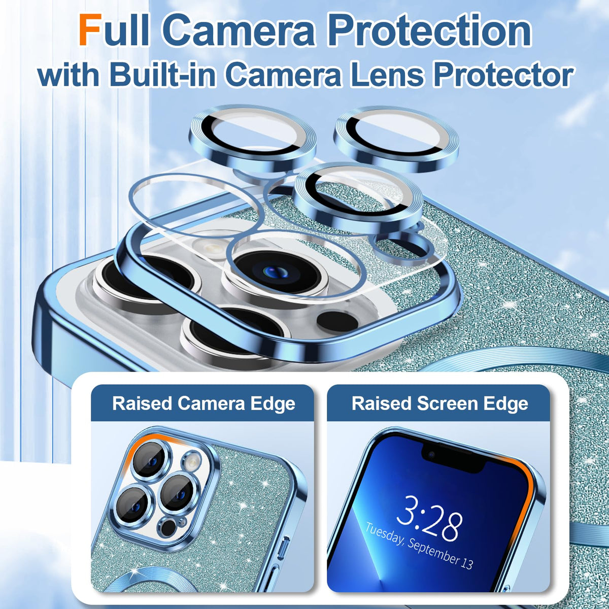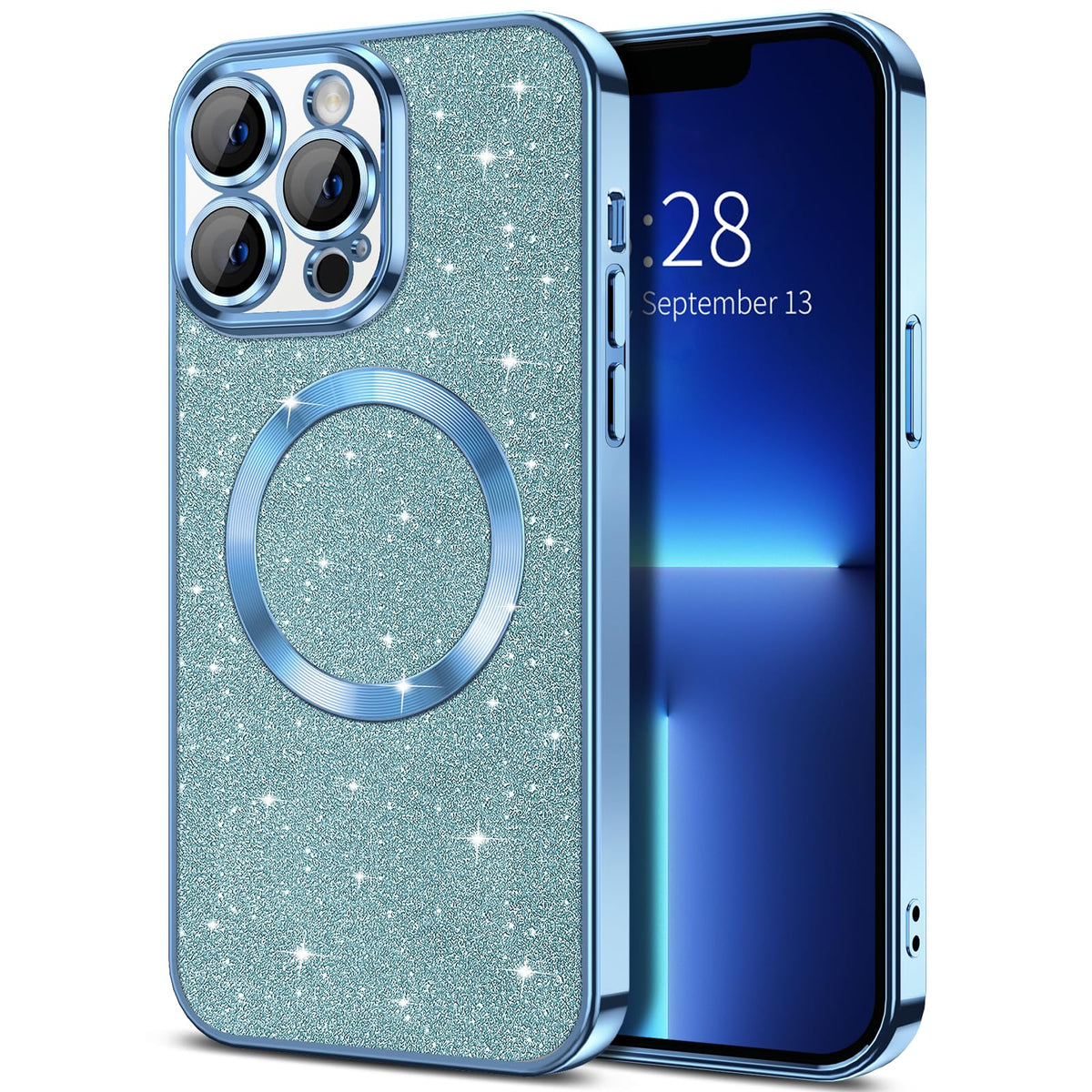 Hython For Iphone 13 Pro Case Glitter, Clear Magnetic Phone Case With Camera Lens Protector [Compatible With Magsafe] Bling Spar