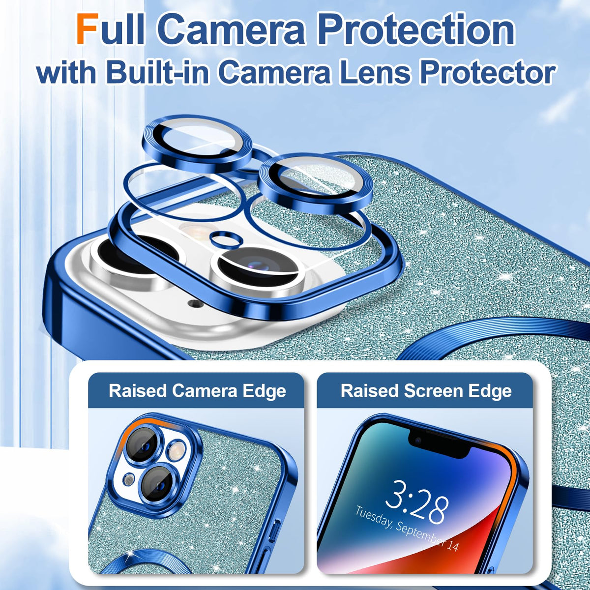Hython For Iphone 14 Case Glitter, Clear Magnetic Phone Case With Camera Lens Protector [Compatible With Magsafe] Bling Sparkle