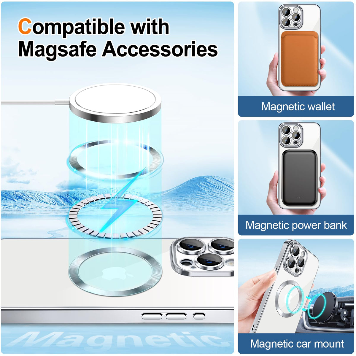 Hython For Iphone 15 Pro Max Case Clear Magnetic Glitter Phone Cases [Compatible With Magsafe] Full Camera Lens Protector Slim G