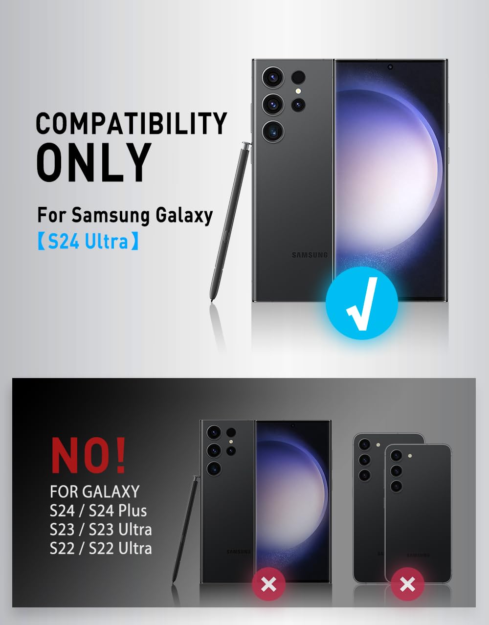 [Compatibility] Compatible With Galaxy S24 Ultra 6.8 Inch (2024 Release). | [Built-In Screen Protector] Built-In Screen Protector Prevents Scratches And Cracks To Screen Without Compromising Touch Sensitivity. | [Built-In Camera Cover Doubles As Kickstand] Zinc Alloy Camera Cover Doubles As A Multi-Angle Kickstand. | [Compatible With Wireless Charger] Built-In 12X N52 Magnets Offer Faster And More Efficient Wireless Charging. | [Military Protection] Shock-Absorbing Tpu And Raised Bezels Protect From Bumps, Drops And Scratches. (Certified Mil-Std 810G-516.6)