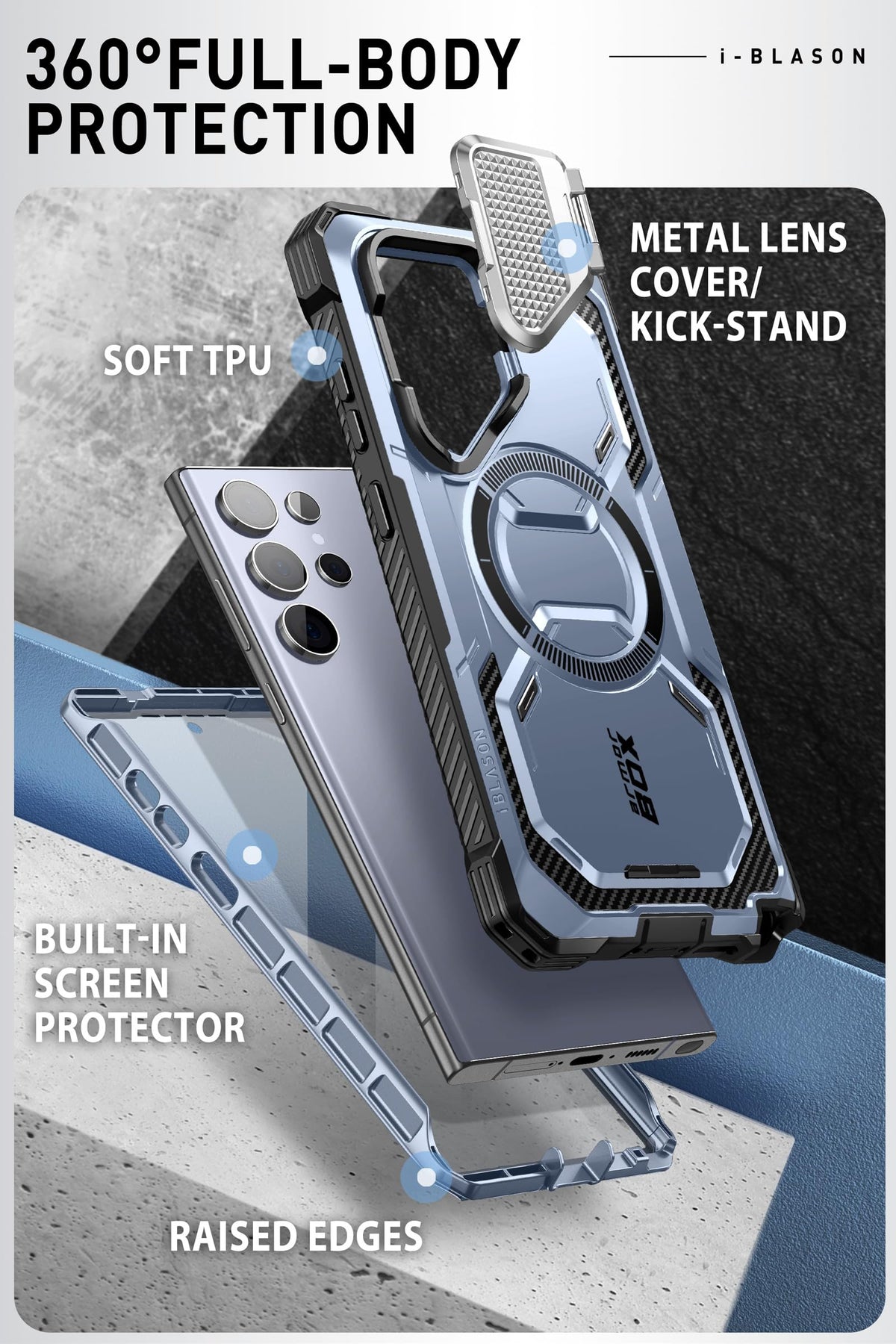 I Blason Armorbox For Samsung Galaxy S24 Ultra Case Magsafe With Camera Cover Stand [Support Wireless Charger] 360 Full Body Cas
