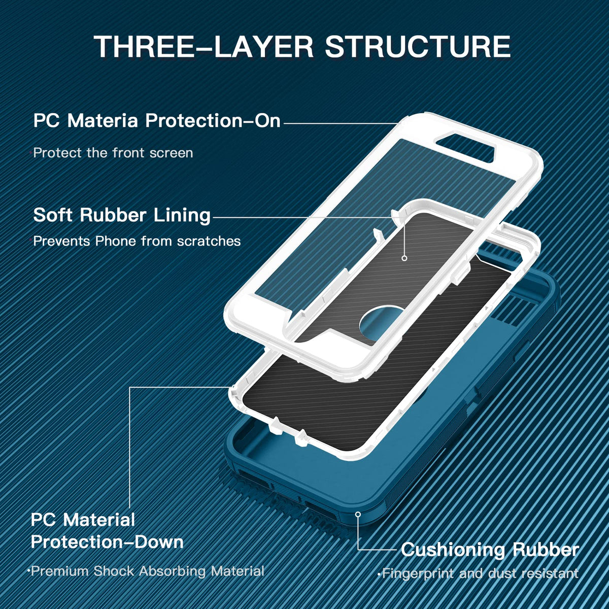I Honva For Iphone Se 2022/2020 Case Built In Screen Protector Shockproof Dust/Drop Proof 3 In 1 Full Body Rugged Heavy Duty Dur