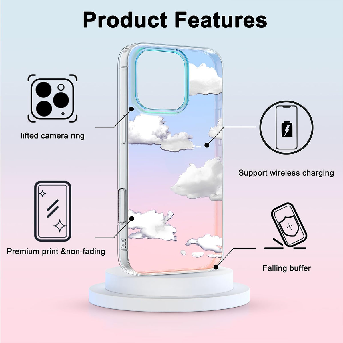 I Mgae In Ar Compact Case For Iphone 16 Pro Holographic Cloud Design,Cute Trendy Soft Slim Tpu Shockproof Protective Phone Cases