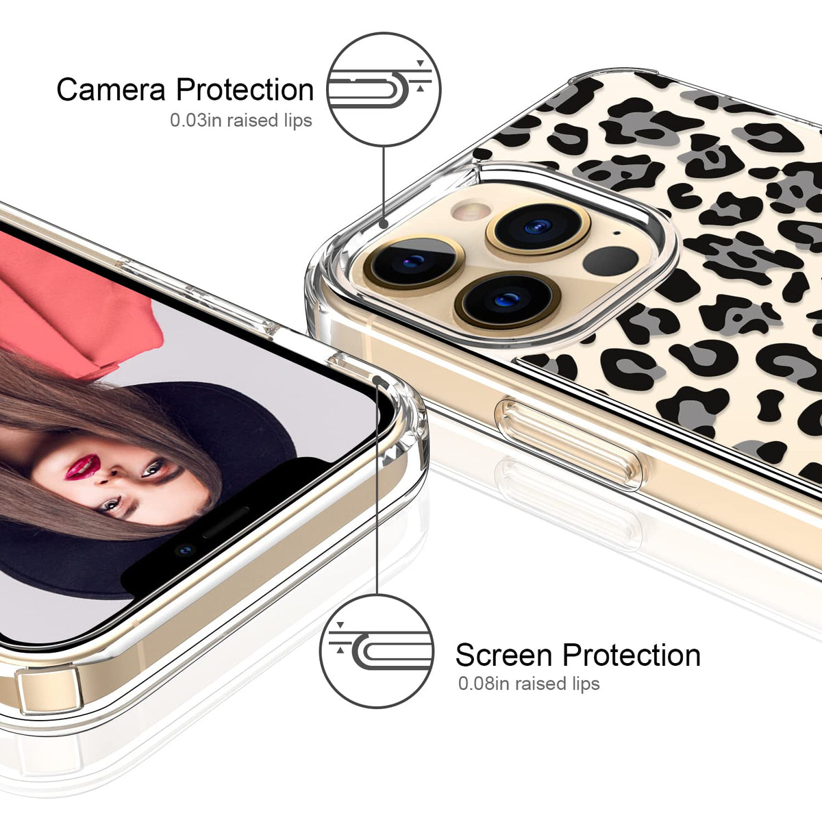 Icedio For Iphone 13 Pro Max Case With Screen Protector,Slim Fit Crystal Clear Cover With Fashionable Designs For Girls Women,Pr