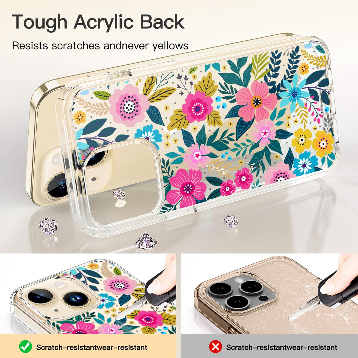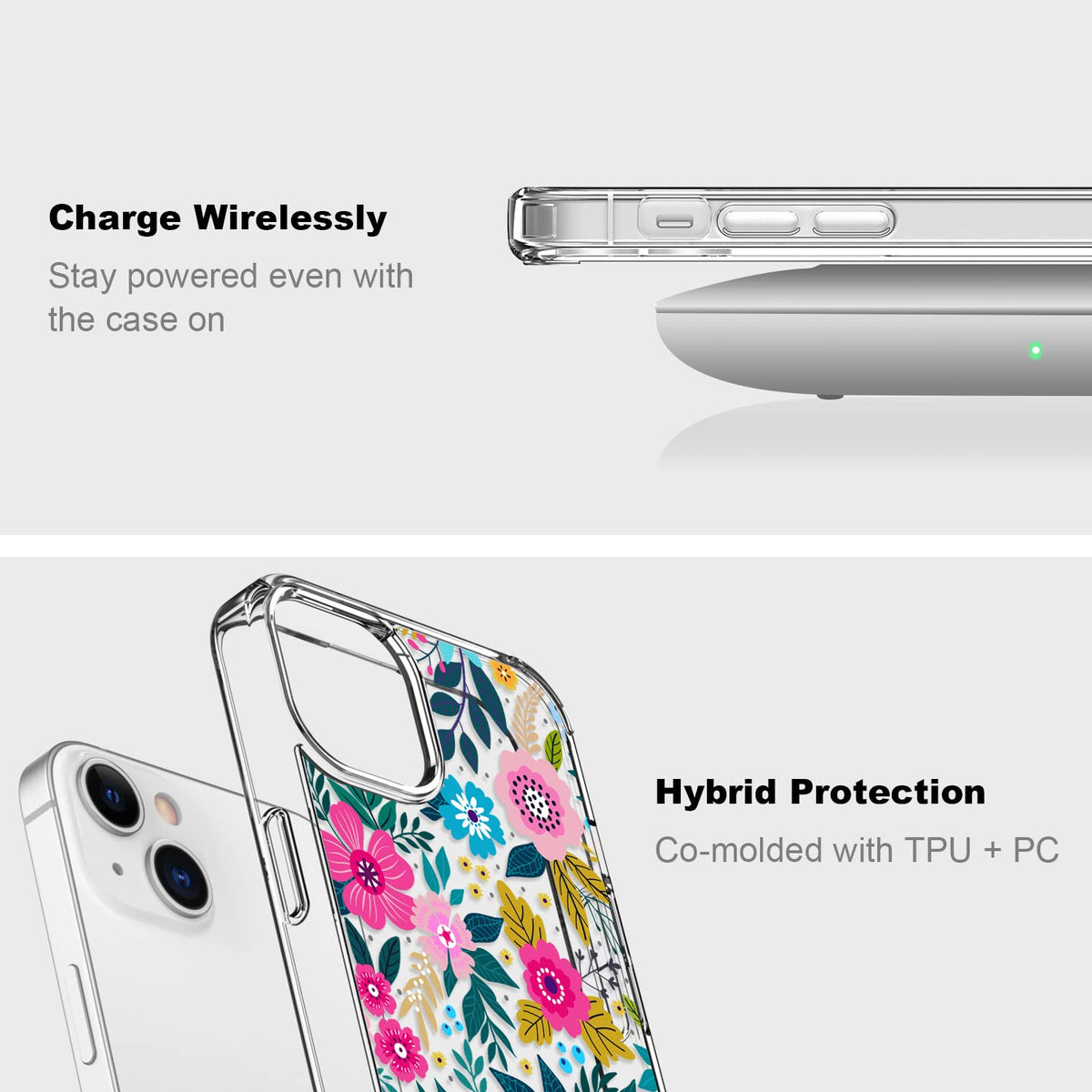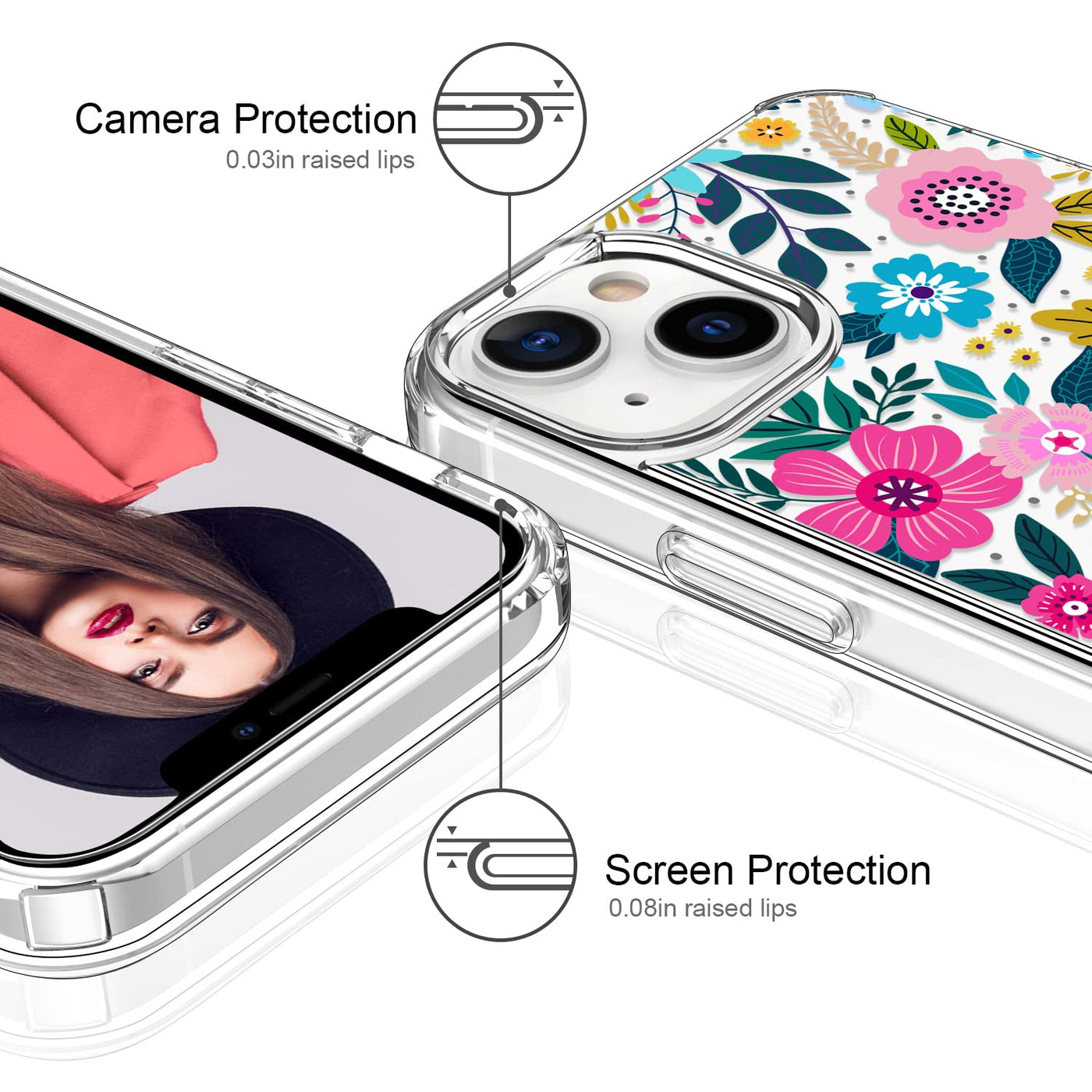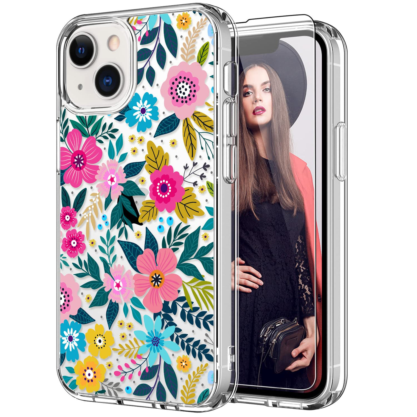 Icedio Iphone 14 Plus Case With Screen Protector,Slim Crystal Clear Cover With Fashion Designs For Girls Women,Durable Protectiv