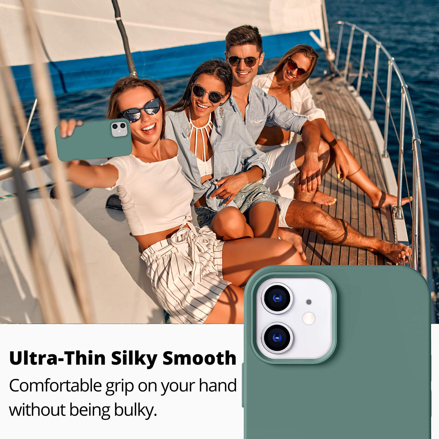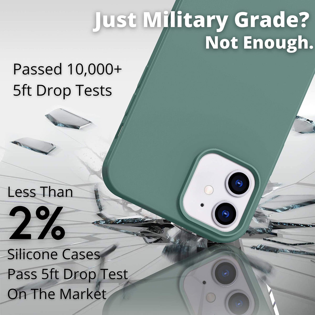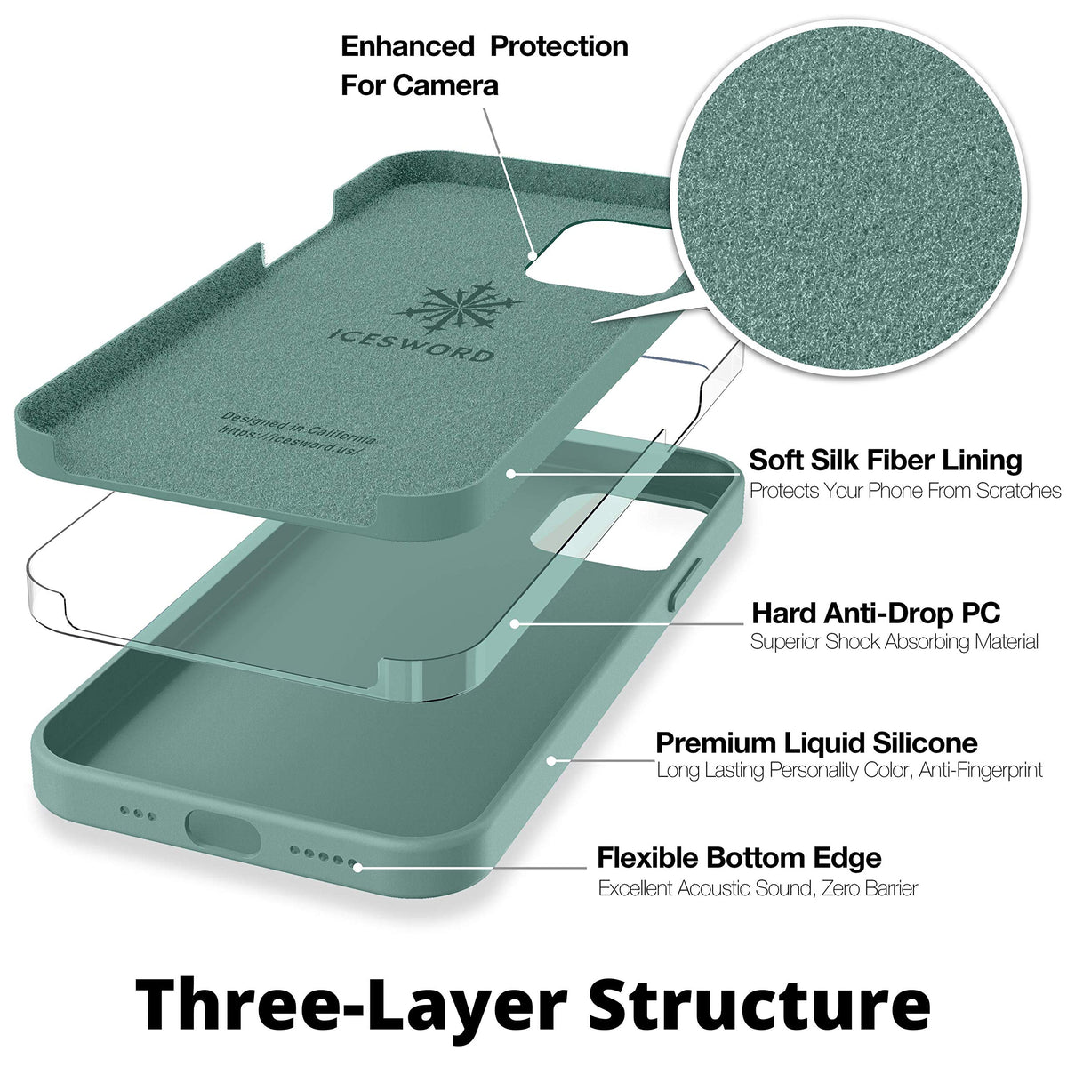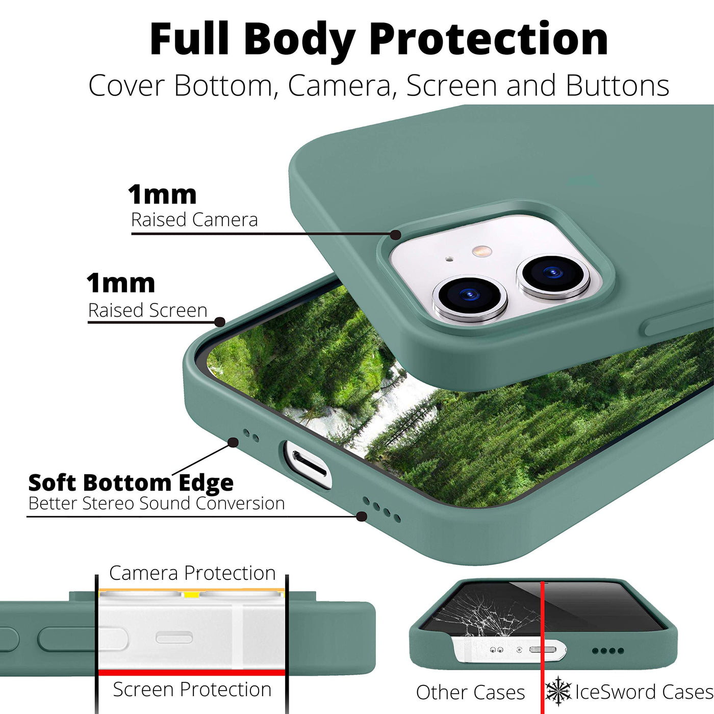 Icesword Iphone 12 Mini Case Pine Green, Thin Liquid Silicone Case, Matte Pure Pine Green, Soft Silk Microfiber Cloth, Gel Rubbe