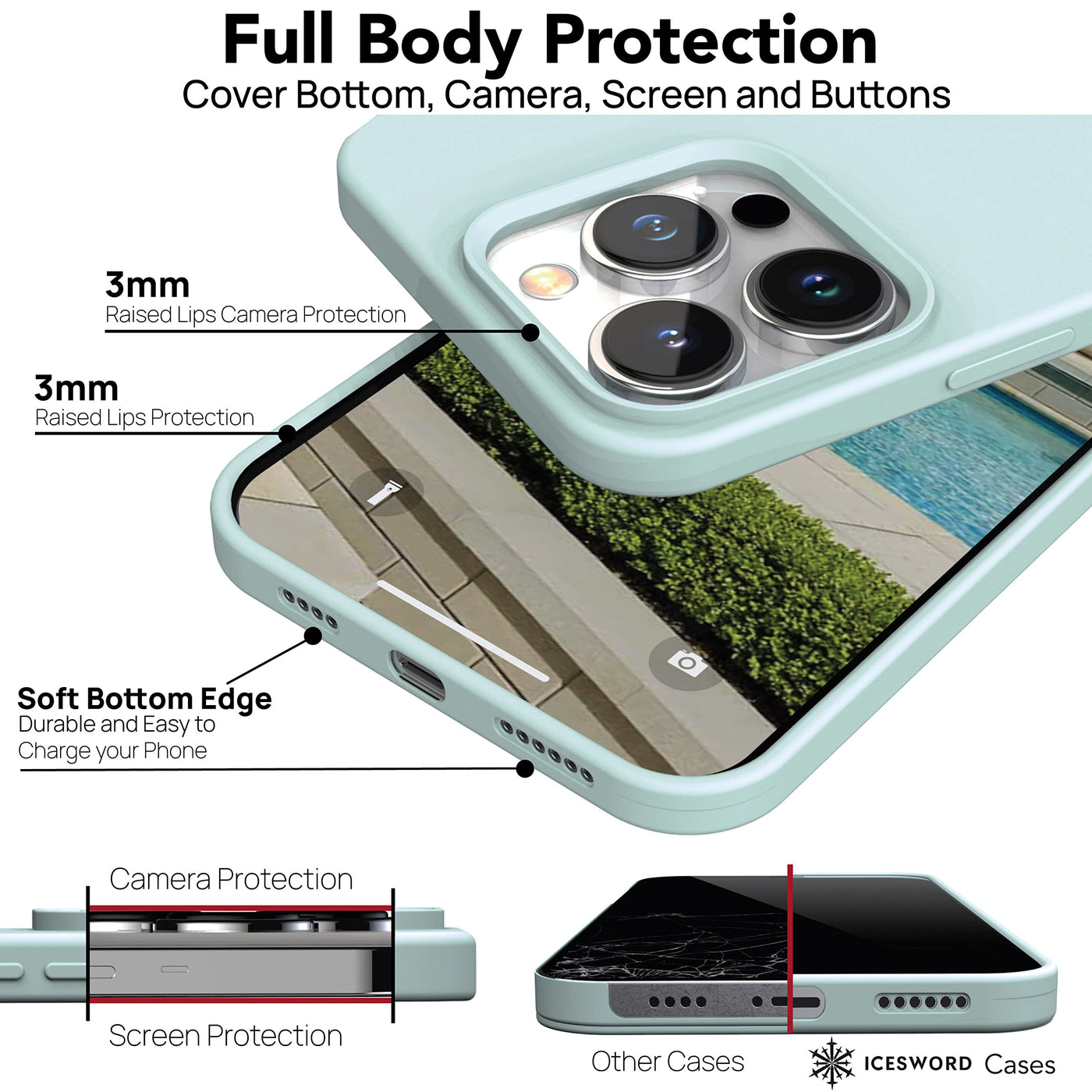 Icesword Iphone 13 Pro Max Case 67A (2021) Mint Green Case, Liquid Silicone Slim Shockproof Phone Case Cover, Soft Anti-Scratch Microfiber Lining, Matte Mint Green, Protective 67 Inch - Mint Green