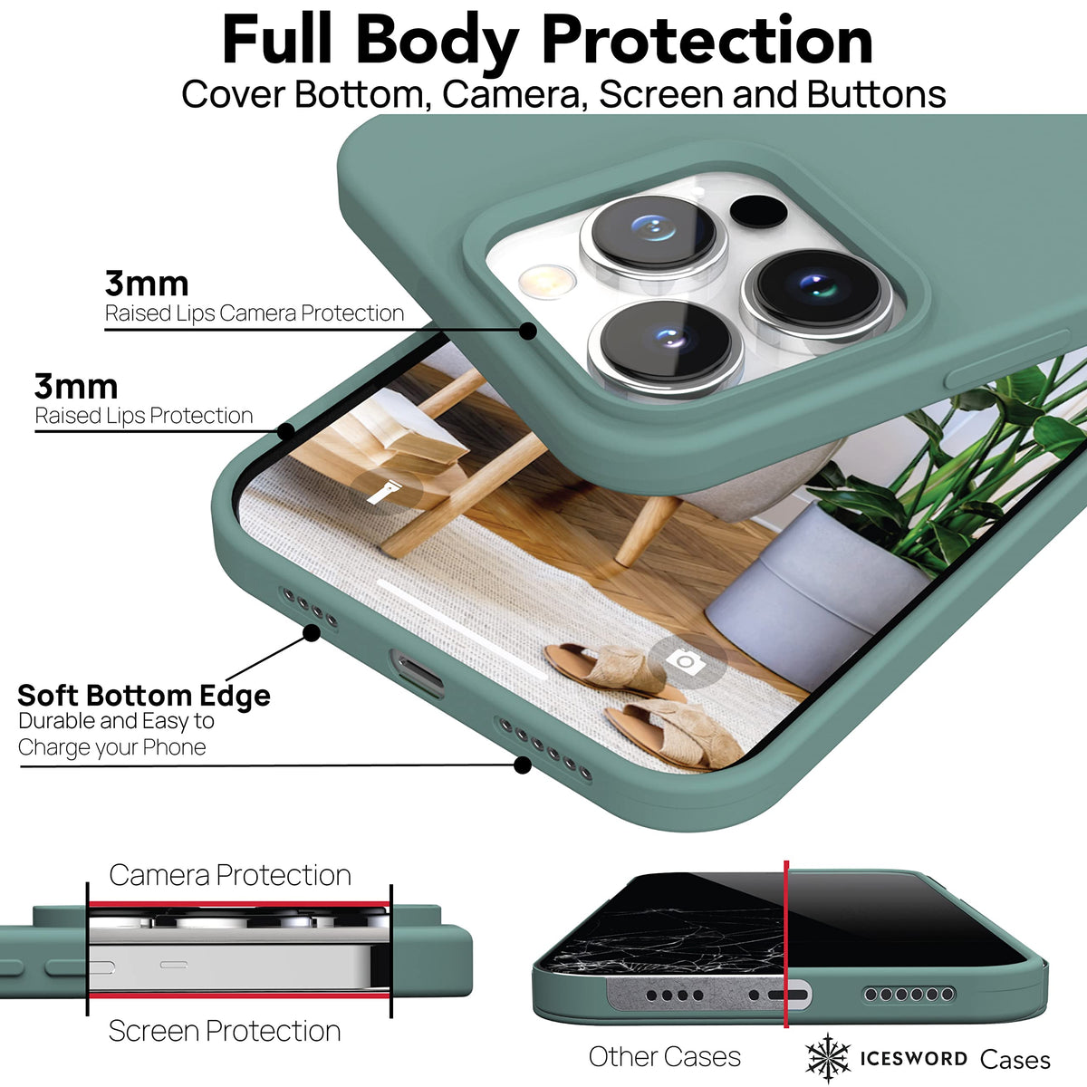 Icesword Iphone 13 Pro Max Case 67A (2021) Pine Green Case, Liquid Silicone Slim Shockproof Phone Case Cover, Soft Anti-Scratch Microfiber Lining, Matte Pine Green, Protective 67 Inch 13 Pro Max - Pine Green
