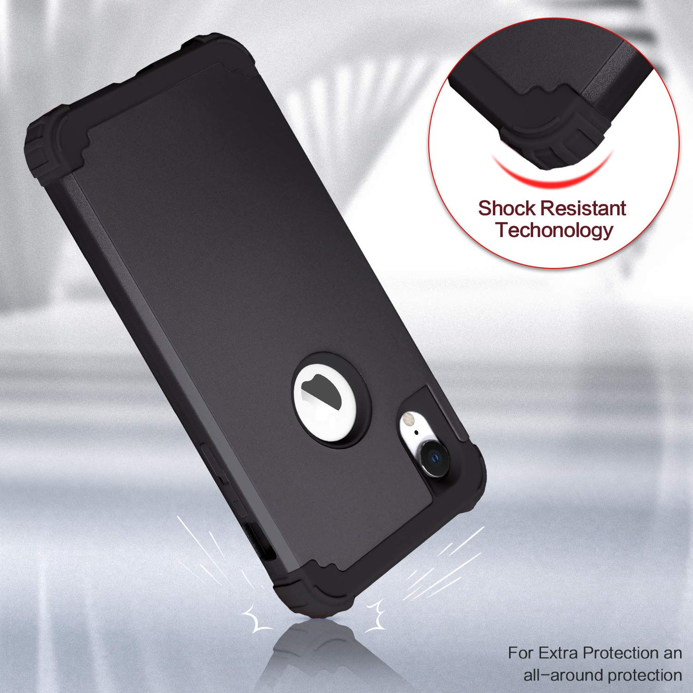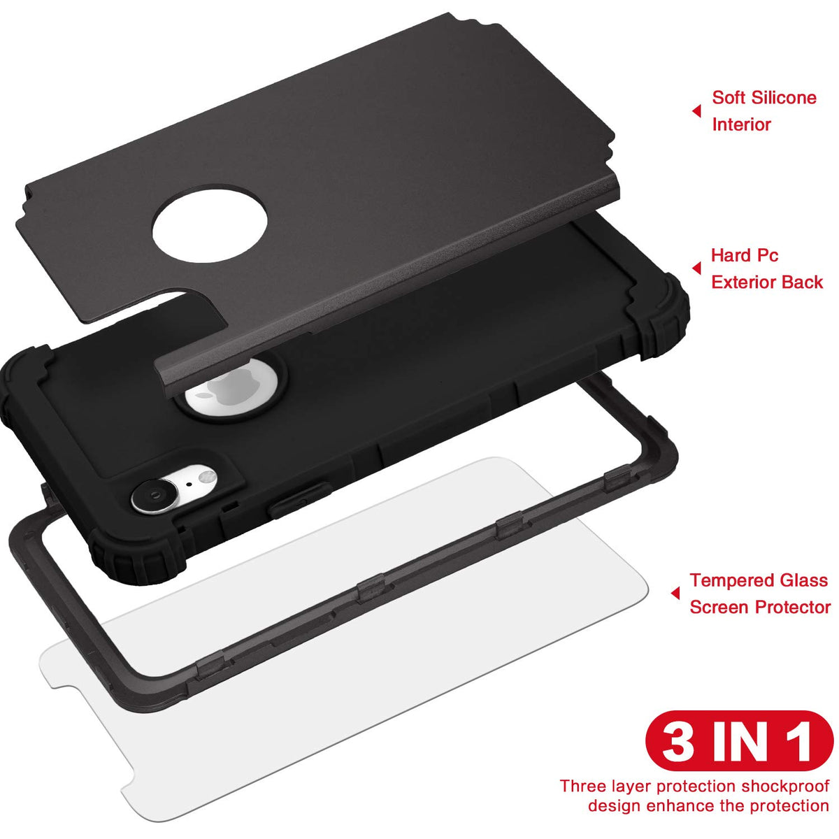 Idweel For Iphone Xr Case, Case For Iphone Xr With Tempered Glass Screen Protector, 3 In 1 Shockproof Slim Hybrid Heavy Duty Har