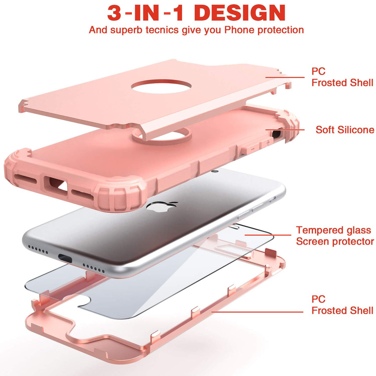 Idweel Iphone Se 2020 Case With Tempered Glass Screen Protector, Iphone Se 3 Case(3Nd 2022),3 In 1 Shock Absorption Slim Heavy D