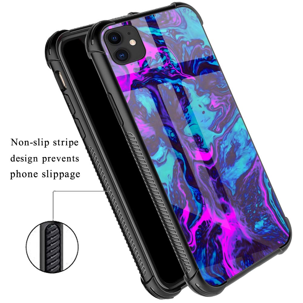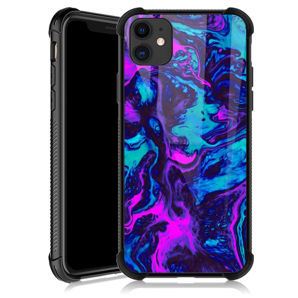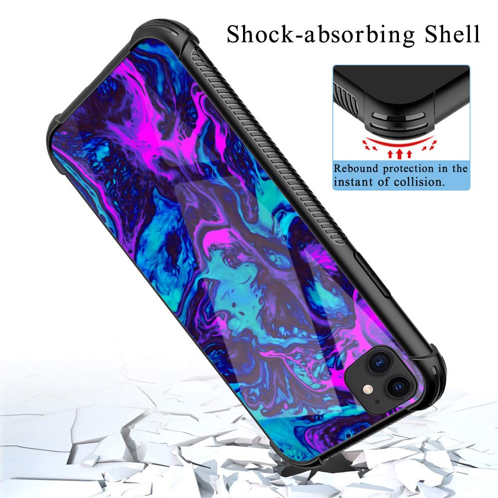 Iphone 11 Case,Purple Blue Quicksand Marble Iphone 11 Cases For Girls,Tempered Glass Back Cover Anti Scratch Reinforced Corners