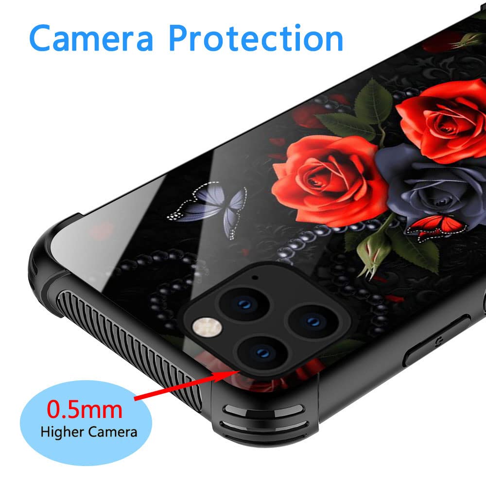Iphone 11 Pro Case, Butterfly Red Rose Iphone 11 Pro Cases For Women Girls, Pattern Design Shockproof Anti Scratch Organic Glass