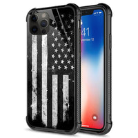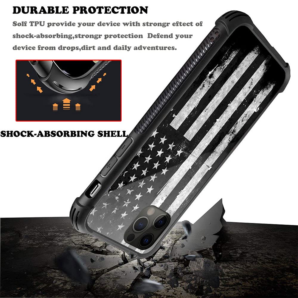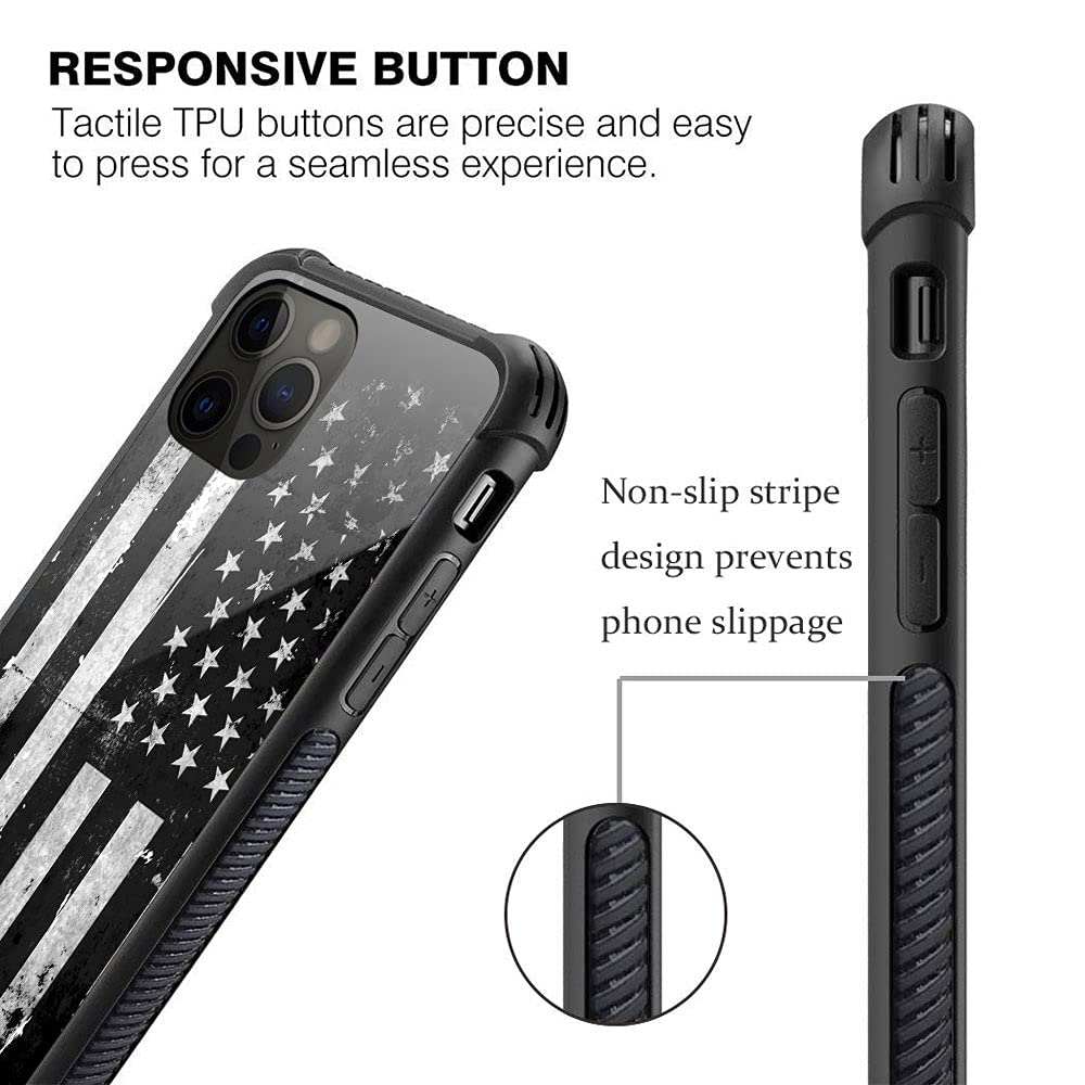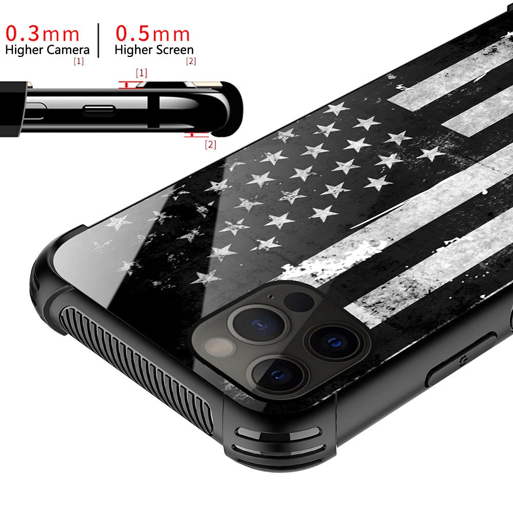 Iphone 13 Pro Case, Black And White Grunge American Flag Iphone 13 Pro Cases, Tempered Glass Back+Soft Silicone Tpu Shock Protec