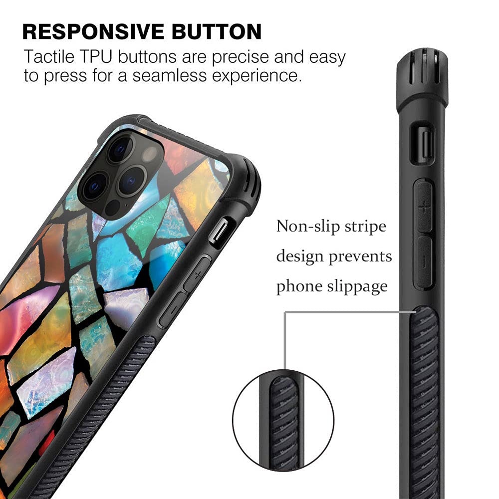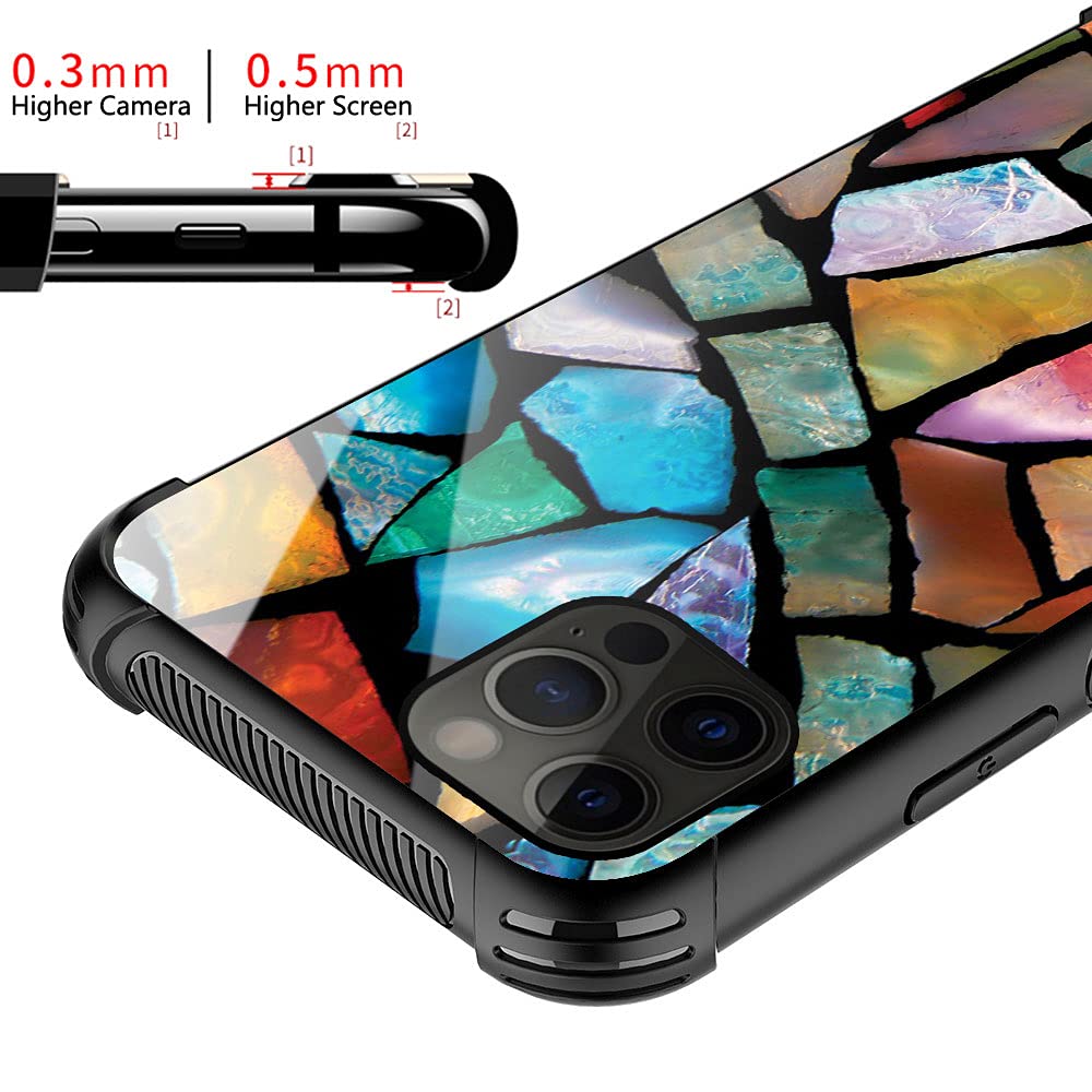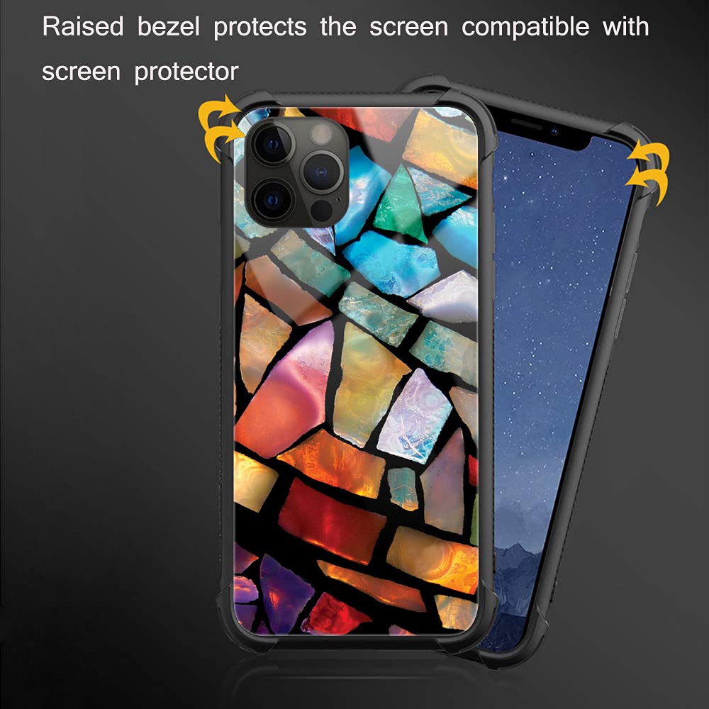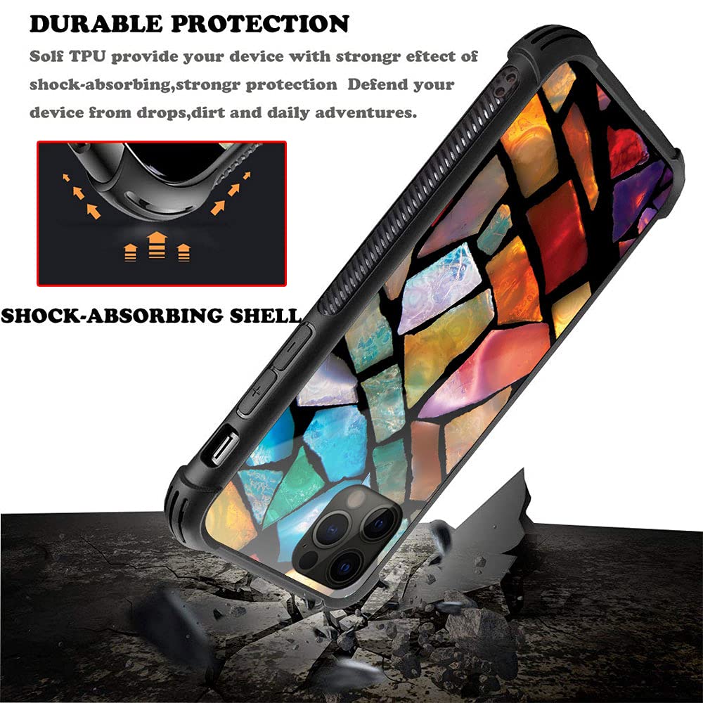 Iphone 13 Pro Case, Stained Glass Mosaic Fiesta Fun Iphone 13 Pro Cases, Tempered Glass Back+Soft Silicone Tpu Shock Protective