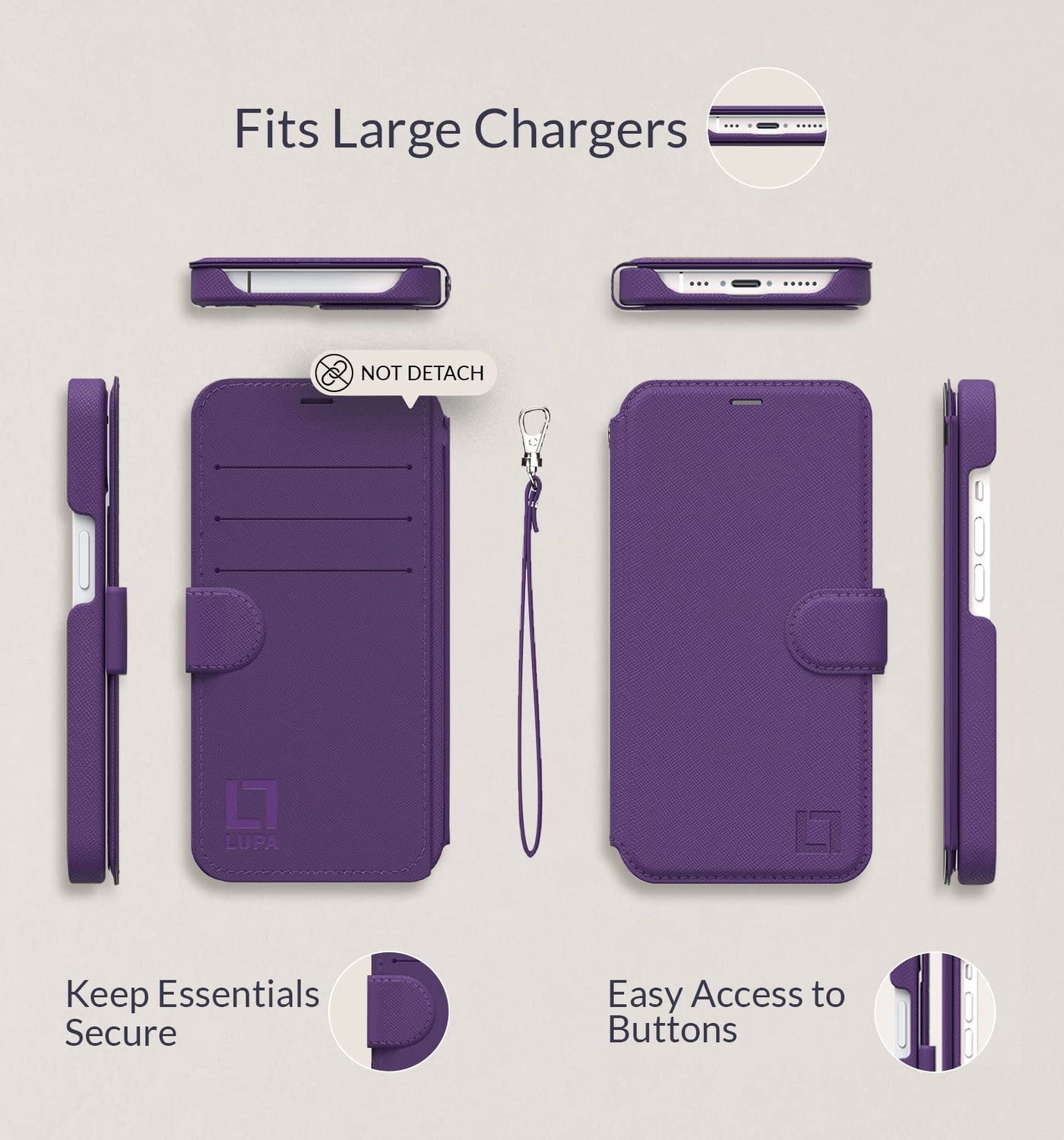 Q: What material is this iPhone 15 case made of?A: This iPhone 15 wallet case is made from high-quality vegan leather, offering durability and a stylish appearance.