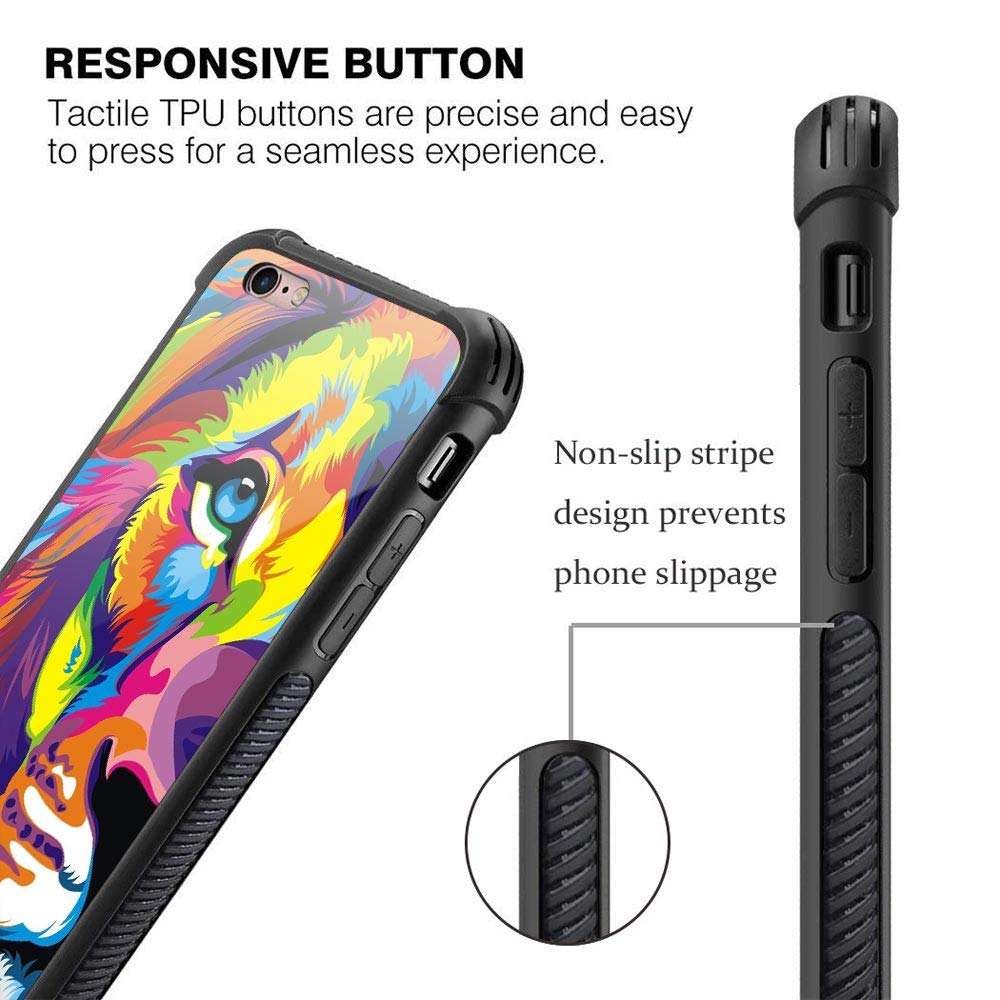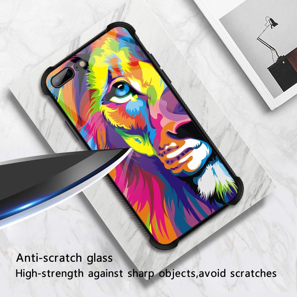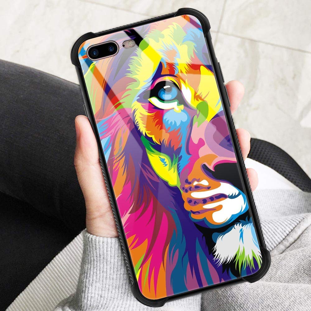 Iphone Se 2022/Se 2020 Case,Tempered Glass Iphone 8 Case For Boys Men,Colorful Lion Art Iphone 7 Cases Shockproof Anti Scratch C