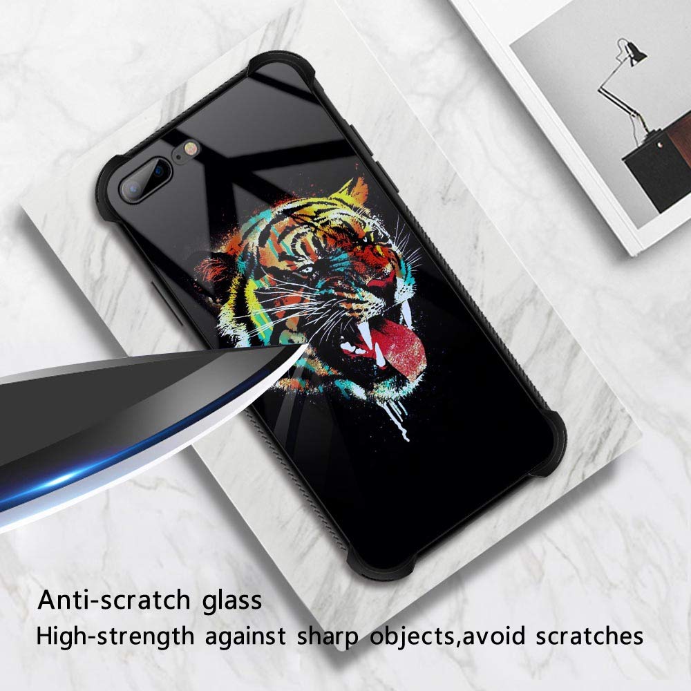 Iphone Se 2022/Se 2020 Case,Tempered Glass Iphone 8 Case For Men Boys,Colorful Tiger Iphone 7 Cases Shockproof Anti Scratch Case
