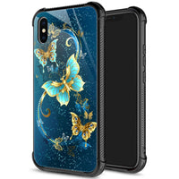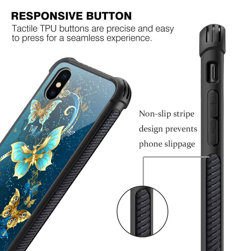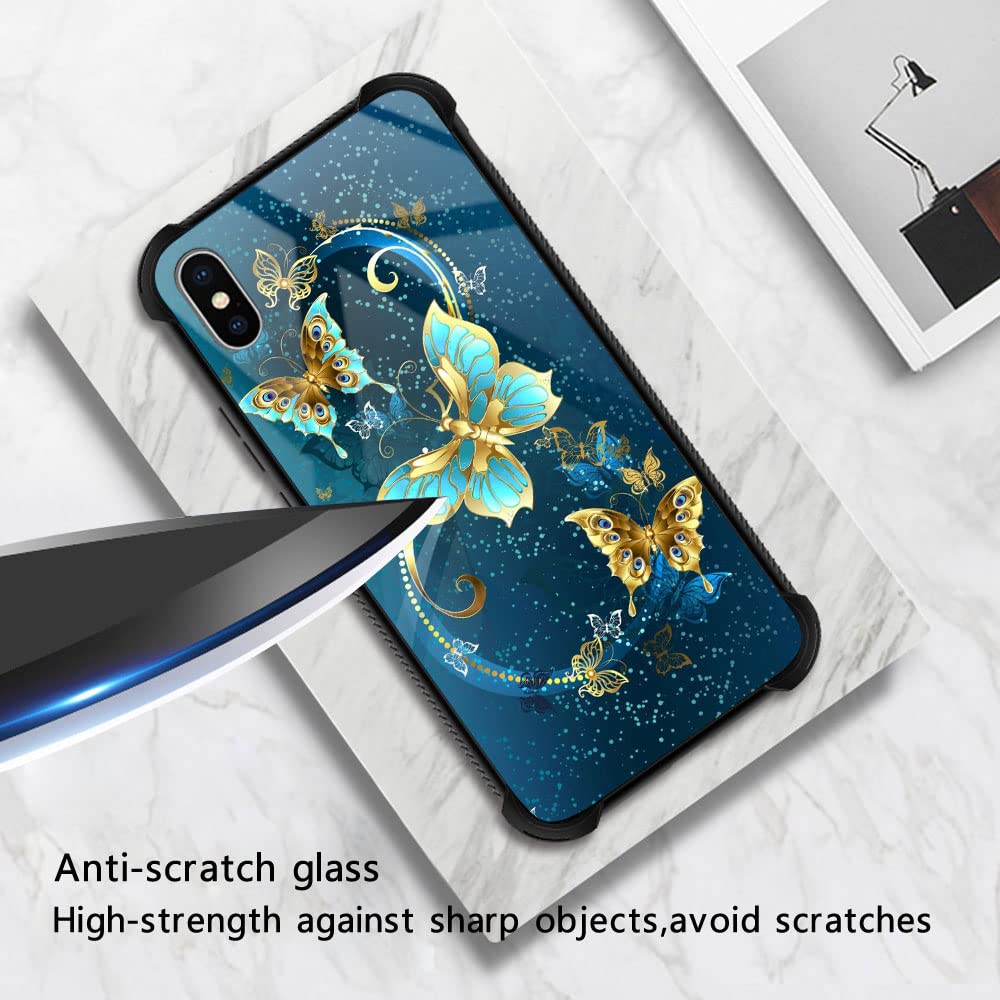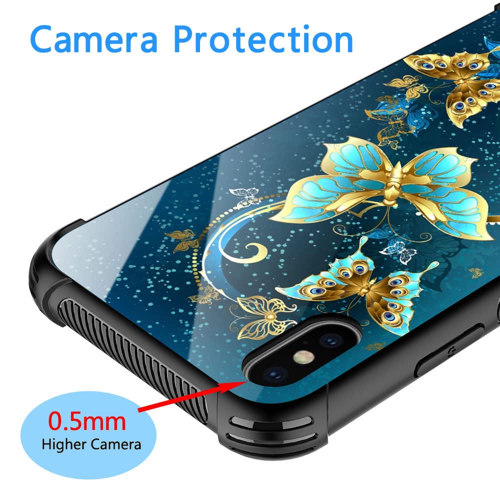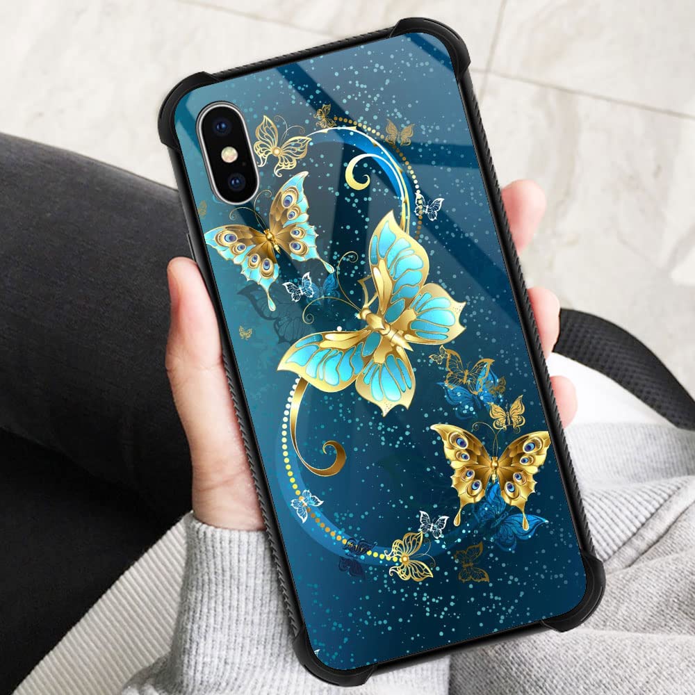 Iphone X Cases, Emerald Butterfly Iphone Xs Cases For Women Girls, Pattern Design Shockproof Anti Scratch Organic Glass Case For