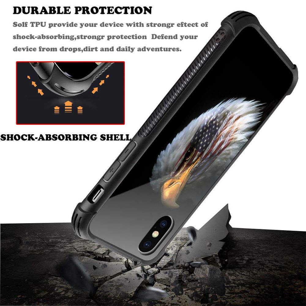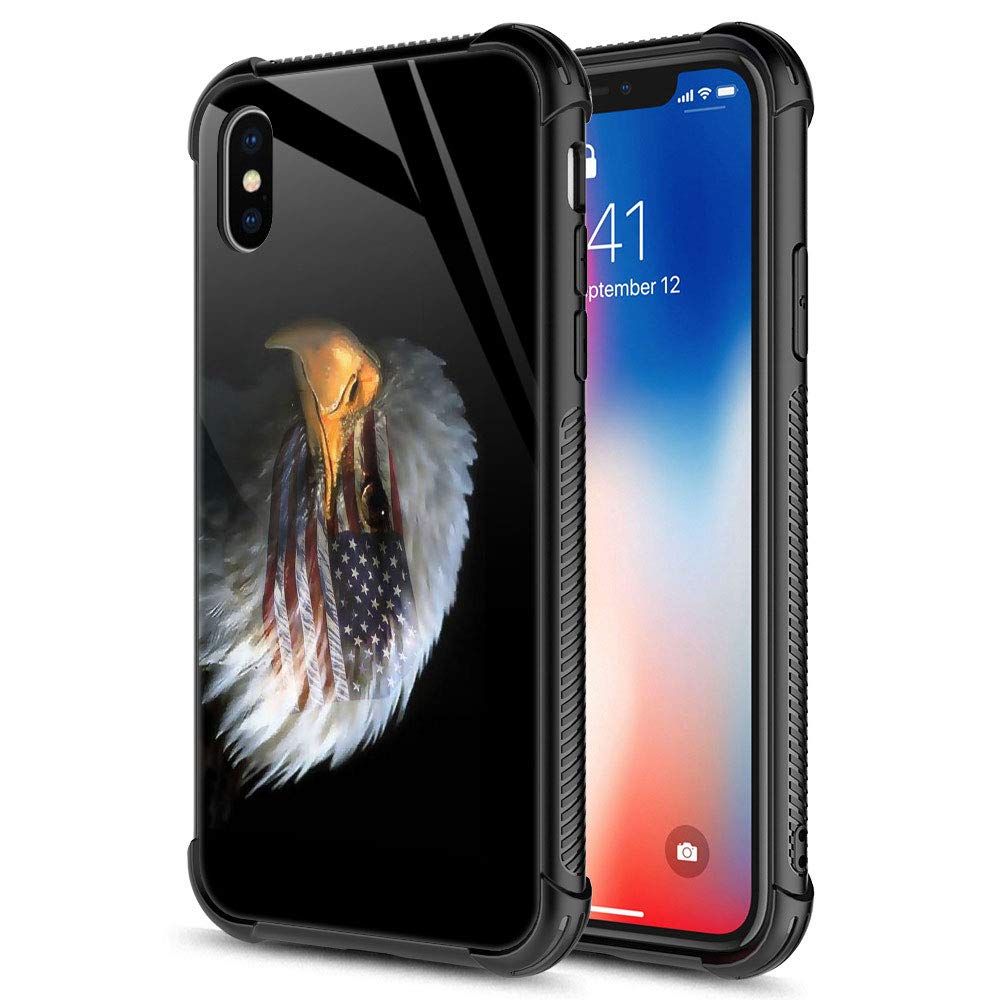 Iphone Xr Case, American Flag In Eagle'S Eye Iphone Xr Cases, Tempered Glass Back+Soft Silicone Tpu Shock Protective Case For Ap