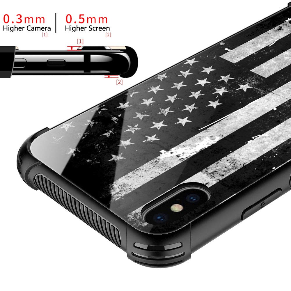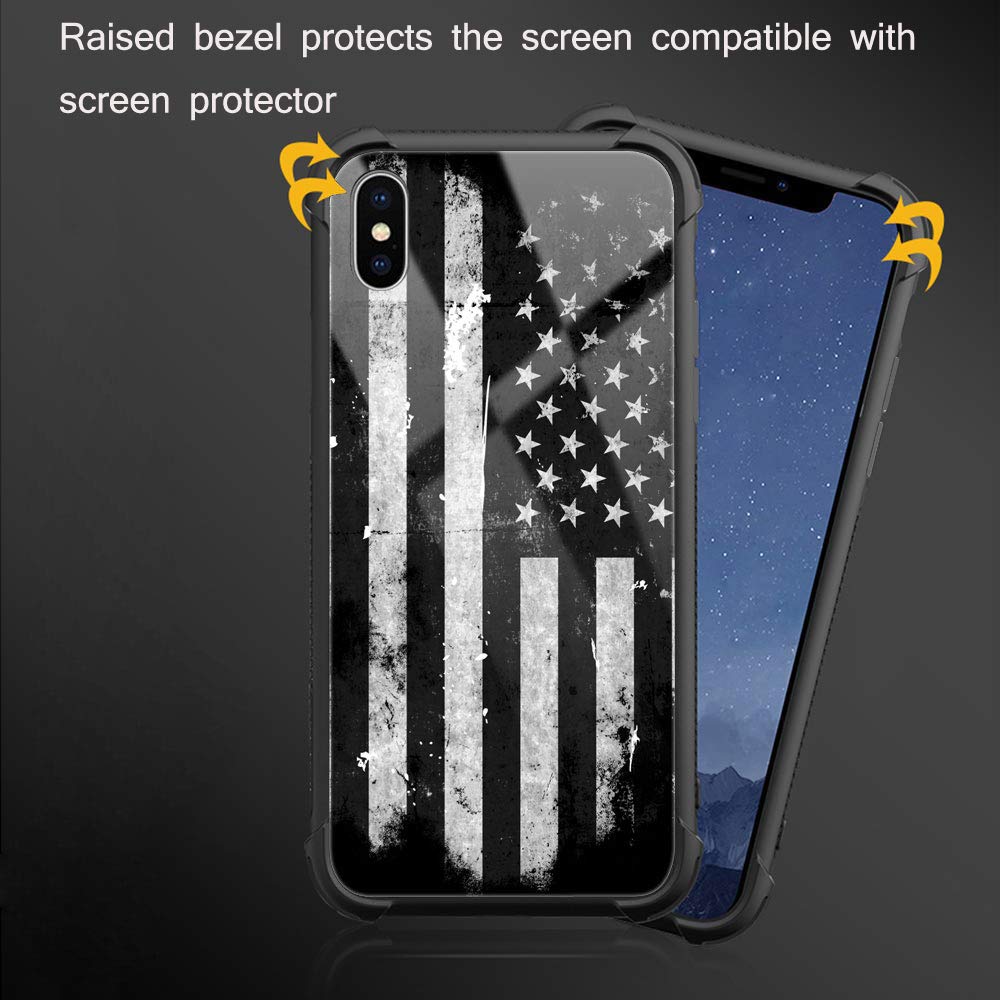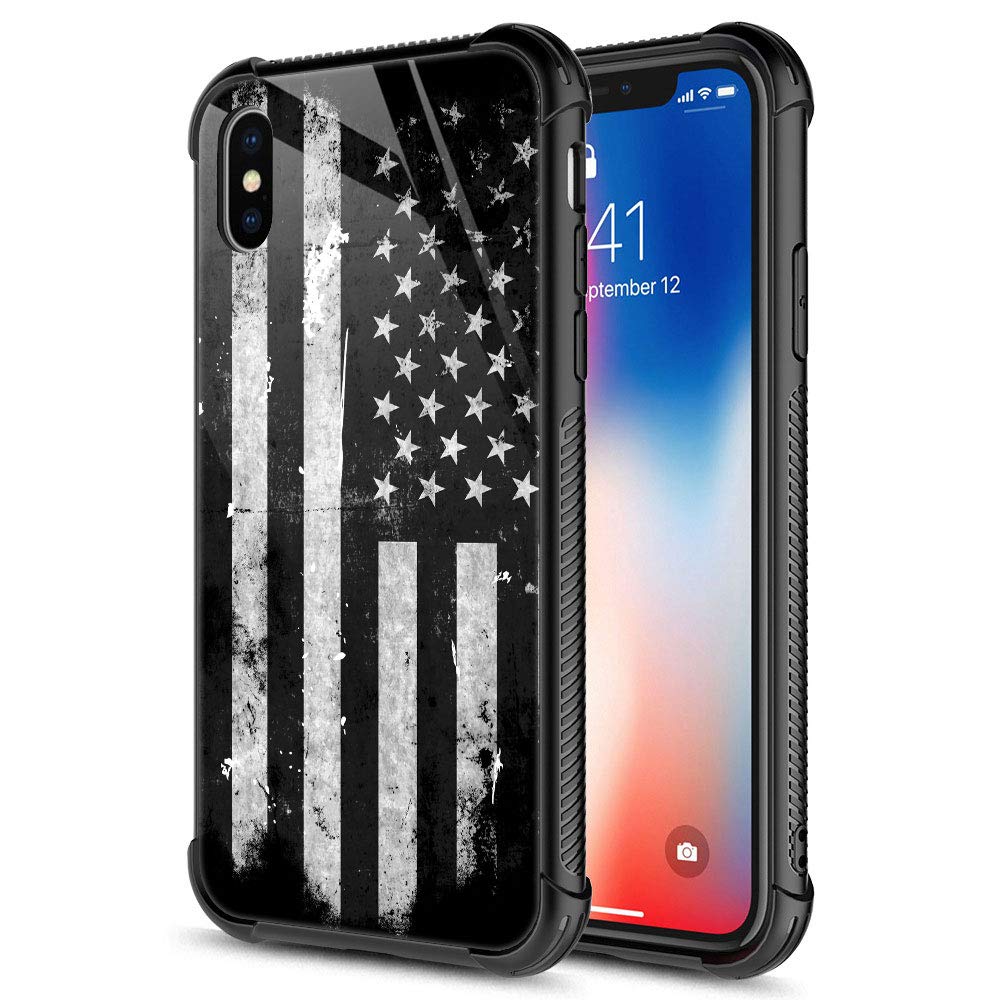 Iphone Xr Case,Black And White Grunge American Flag Iphone Xr Cases, Tempered Glass Back+Soft Silicone Tpu Shock Protective Case
